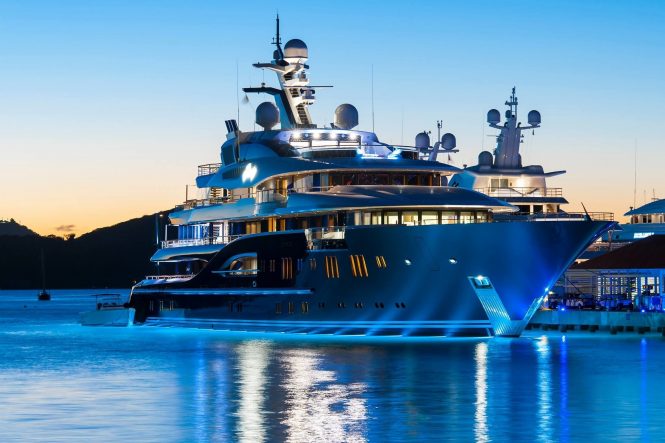 British studio Winch Design has produced a few of the interiors on this list, and their latest is arguably their most impressive yet: 111.5m/365.10ft Lürssen mega yacht TIS has period French interiors spanning the reigns of Louis XIV to Louis XVIII. Calacatta Vogli marble and gold leaf is used throughout, the most stunning example being the spa with bas relief lemon grove with golden lemons on the ceiling. Fireplaces and bookcases are perfectly integrated into the finely panelled walls and you might even forget that you are on board a yacht as you relax and entertain in the palatial setting. The accommodation sleeps 18 guests across nine en-suite cabins, who will wake every day to comprehensive spa and entertainment facilities and an exhaustive list of water toys ready for fun on the water.
