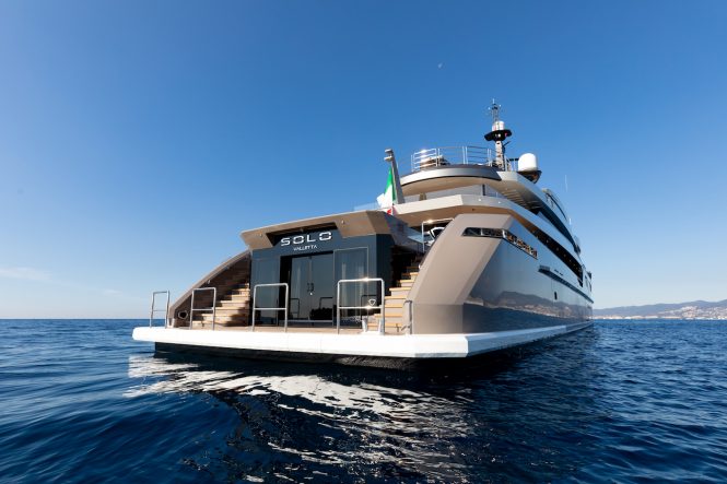 Francesco Paszkowski worked with Margherita Casprini to complete the interiors aboard awards-winning 72m/236.3ft motor yacht SOLO, and the result is sophisticated metallic grey surroundings complemented by dark wood furnishings and mirror-like surfaces. The skylounge is one of the social hubs and has a baby grand piano and a fireplace creating an intimate environment ready to host any social event, from a gathering with family and friends to an after party following the Cannes Film Festival or one of the sensational regattas at Porto Cervo. On board beauty salon and spa massage services, a hammam and sauna provide more than a little indulgence to prepare the 12 guests for any occasion.
