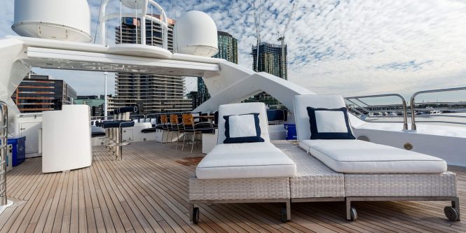 Amenities: Sundeck Jacuzzi, crow’s nest, gym equipment, stabilisers underway, stabilisers at anchor, air conditioning, Wi-Fi