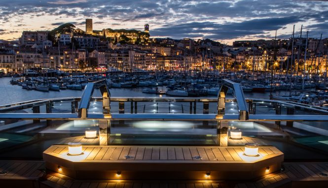 Wine connoisseurs will be impressed with the selection on offer in the display rack adjacent to the formal dining table. Wine isn’t the only spirit available on board though and guests can sip on a tequila sunset or daiquiri, or their own unique creation as they admire the Cannes city lights from the sundeck Jacuzzi.