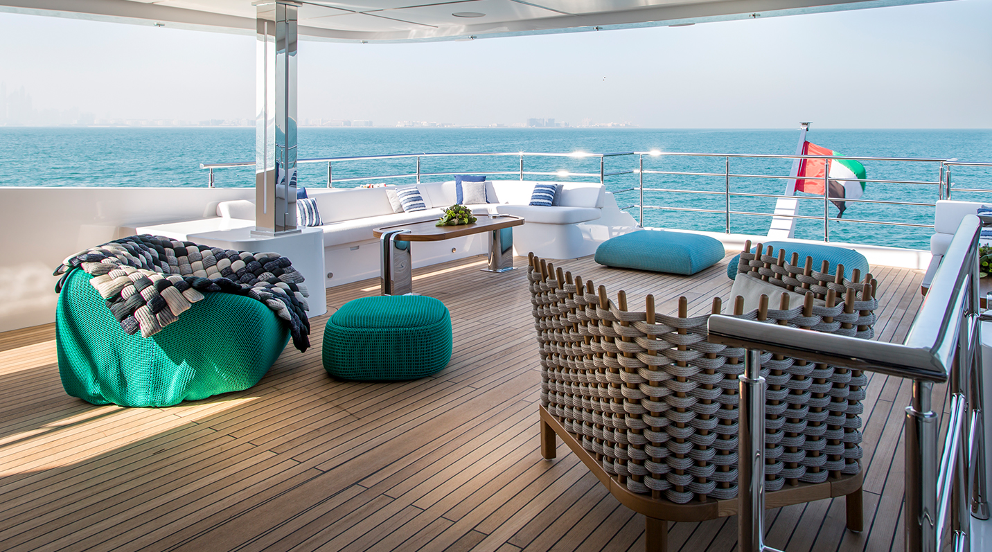 The beach club and swim platform make a marvellously large space beside the sea and the foredeck Jacuzzi is also generously sized to create highly desirable outdoor areas across the decks.