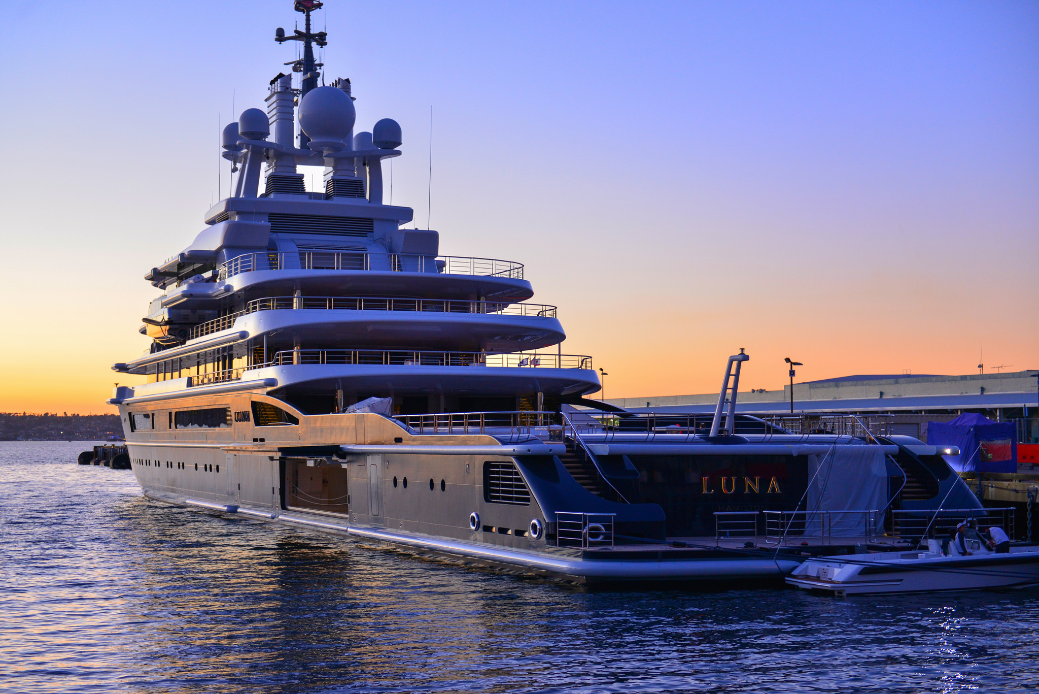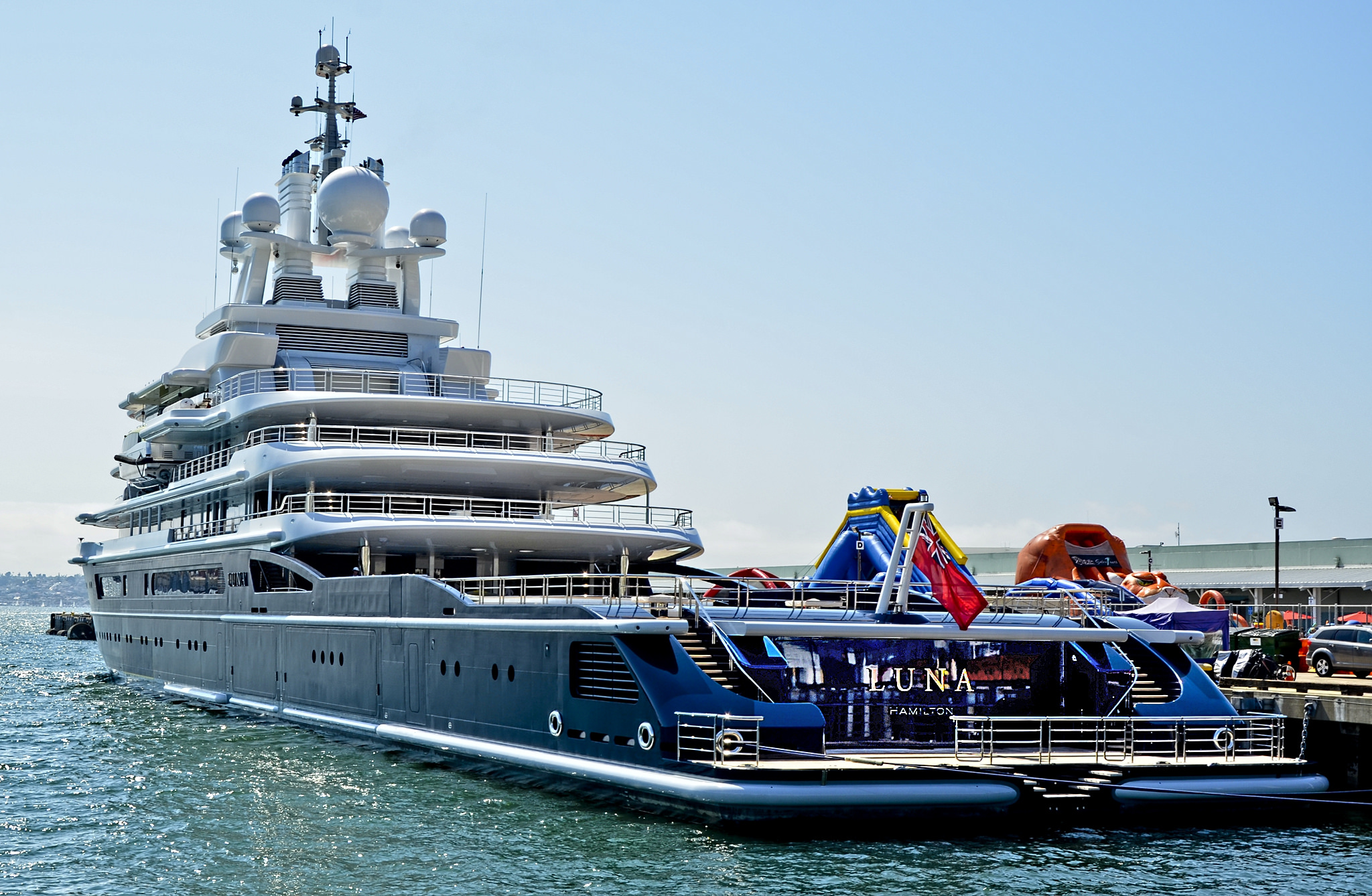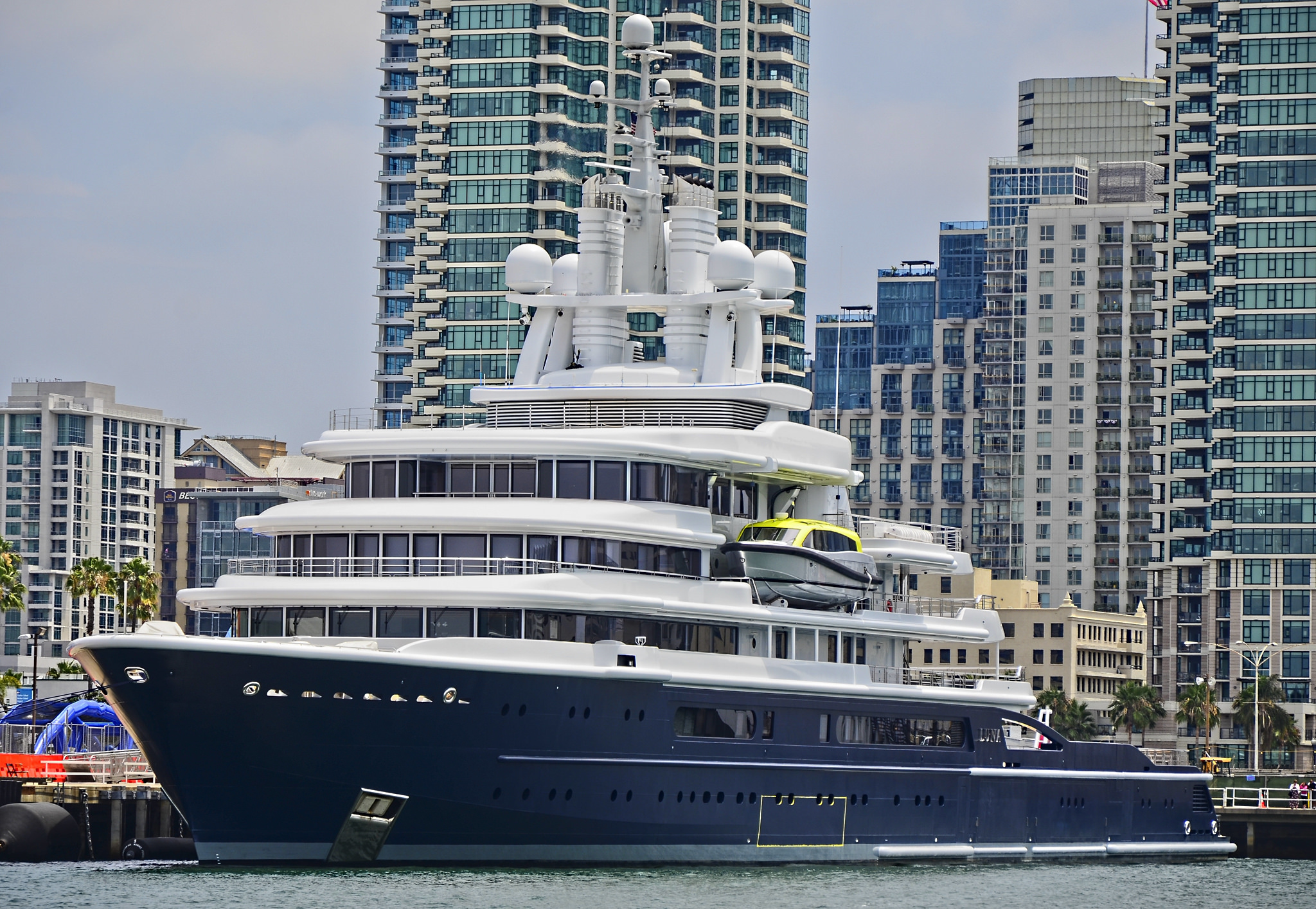 3. Luna looks great in any ambience. Even in the Big city life of San Diego, US. She features two helicopter pads, facing forward and to the rear around the large communications tower.