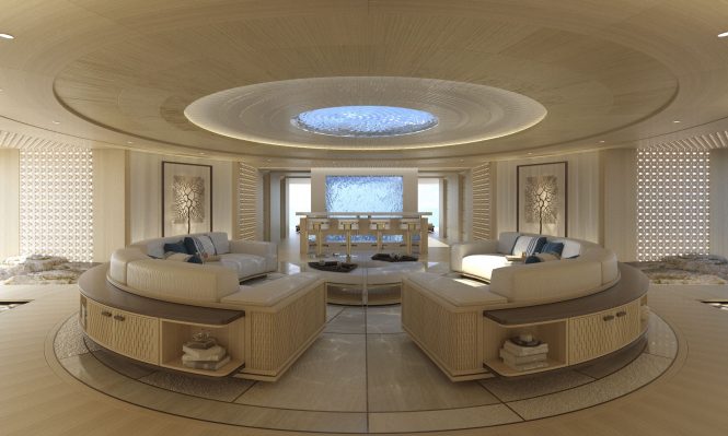 Designed on Oceanco’s LIFE platform, the yacht will have lower GT and hence less power, which will allow to reduce technical areas onboard and expand room for relaxation and socialising. The single tire room located in the LIFE platform will ensure spacious accommodation, entertainment space and flexible layout.