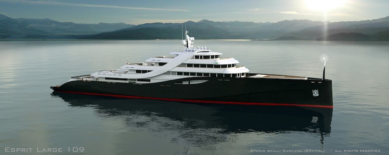 With naval architecture, exterior as well as interior design by Studio Sculli, the spectacular 109-metre motor yacht ESPRIT LARGE 109 is a beautiful luxury vessel created by Mauro Sculli, in collaboration with Fincantieri Yachts. Superyacht ESPRIT LARGE 109 was designed to sleep up to 16 guests in 8 beautifully appointed cabins, including one Owner, three VIP cabins and four guest cabins. In addition she is able to accommodate a crew of 36.