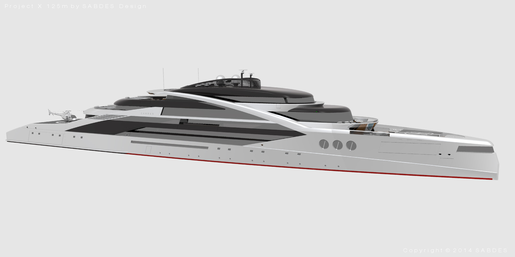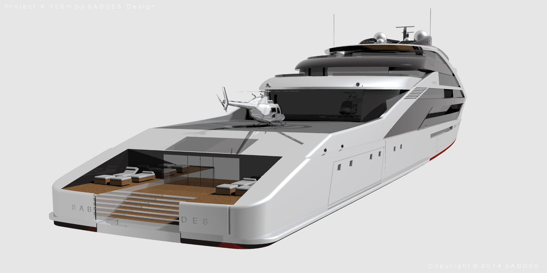 Based on their iconic Project X scaleable platform, the Australian Yacht Design studio SABDES have designed a new, 125m mega yacht Project X version. The original Project X was recently shortlisted for the Yacht and Aviation Awards 2014.