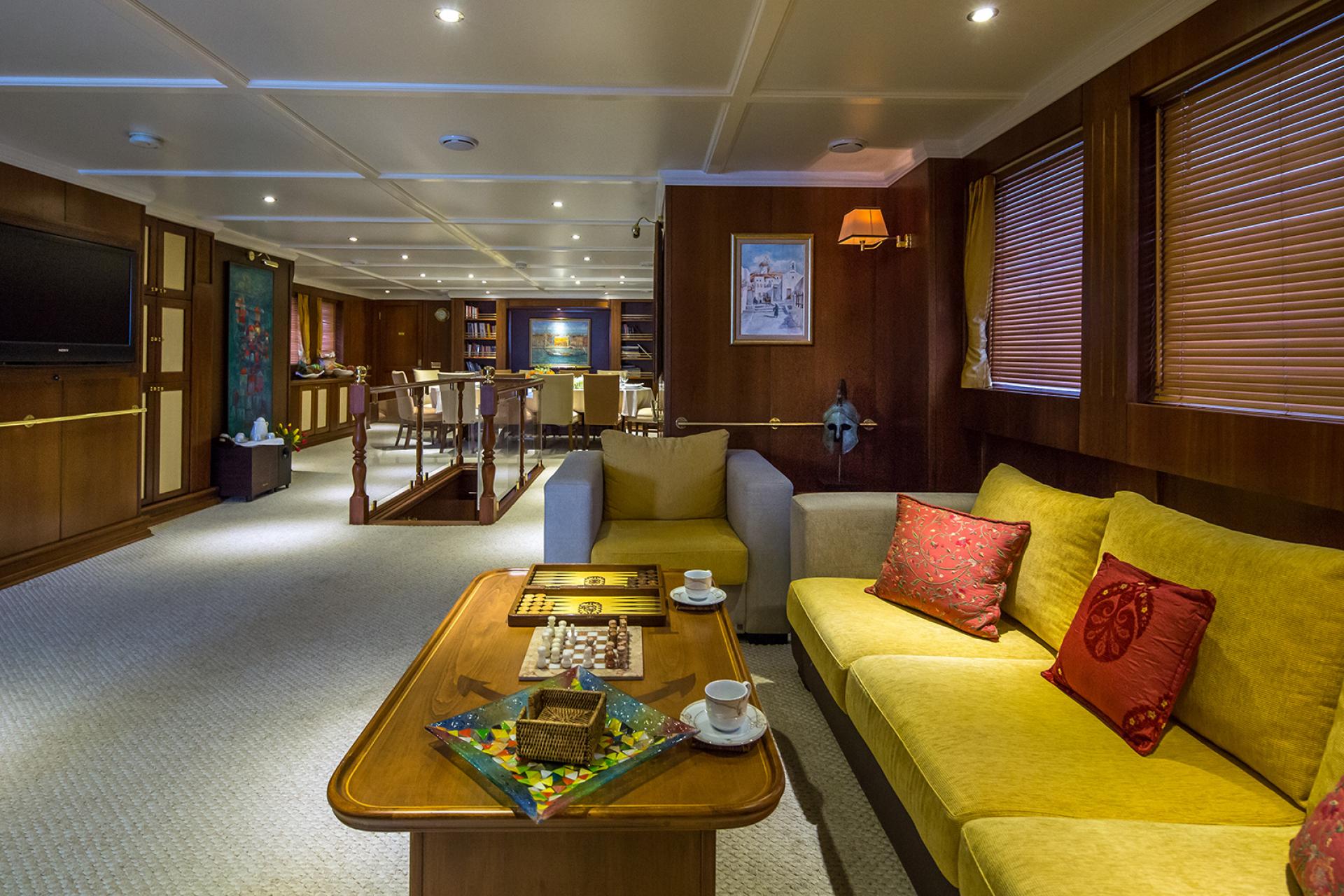The open plan salon is perfect for everyday living and for celebrating special occasions, with large windows and vibrant artwork to balance the rich wooden panelling and pale upholstery. Begin the day with coffee in the salon and catch up on the latest news and sports before heading out to explore the rich cultural delights of Croatia or Montenegro. When you return, every guest will savour a meal at the air-conditioned forward formal dining area, with sumptuous three-course meals on offer from an expert chef.