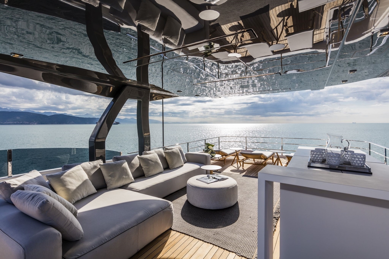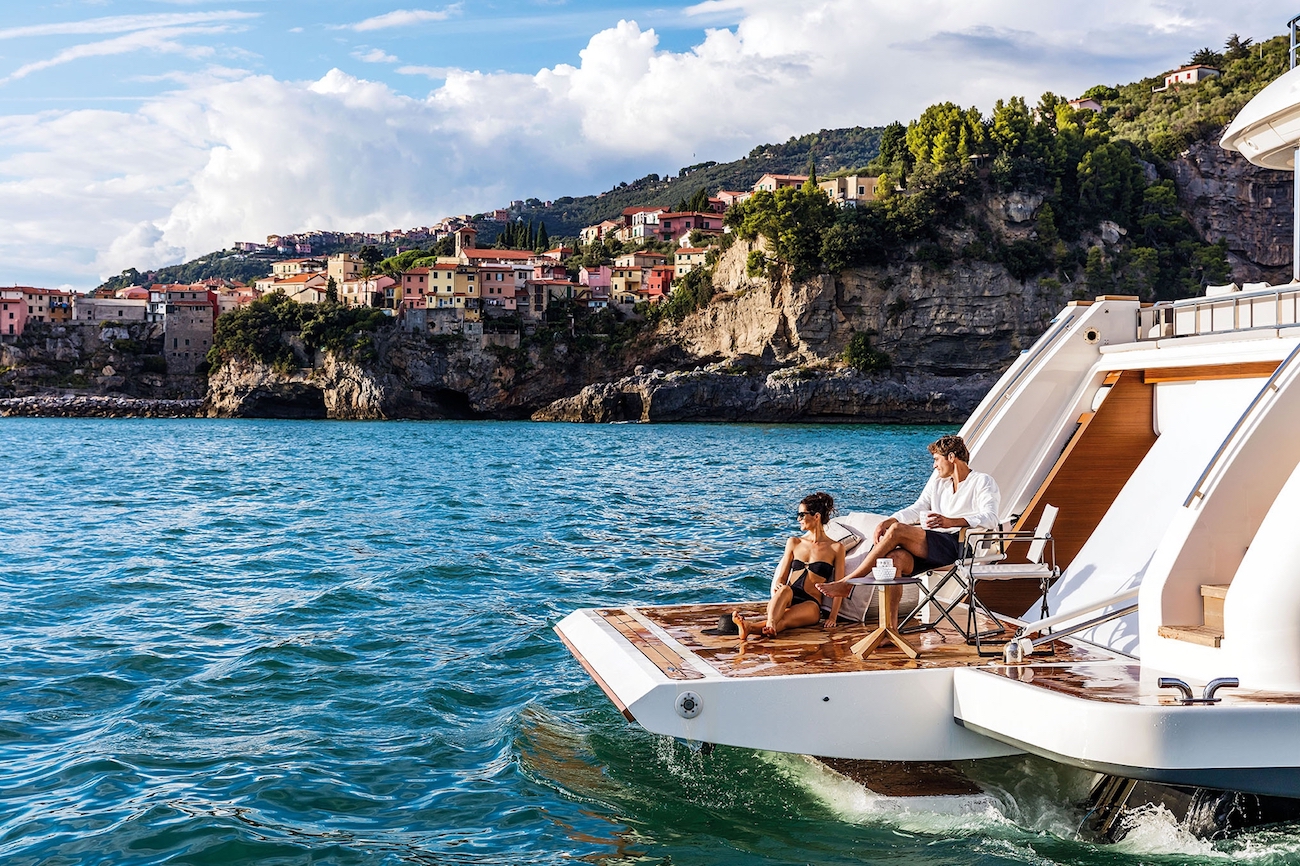 The 33m Custom Line Navetta Ferretti luxury motor yacht DECEMBER SIX is offering a very special 20% discount on remaining weeks in June, that cruise towards the Naples region in Italy. Delivered in 2018, she features naval architecture by Ferretti, her interiors are the work of Studio Zuccon International Project & Sarah-Lee. The yacht accommodates 12 guests, in 5 spacious cabins and represents an excellent Mediterranean charter yacht.