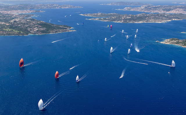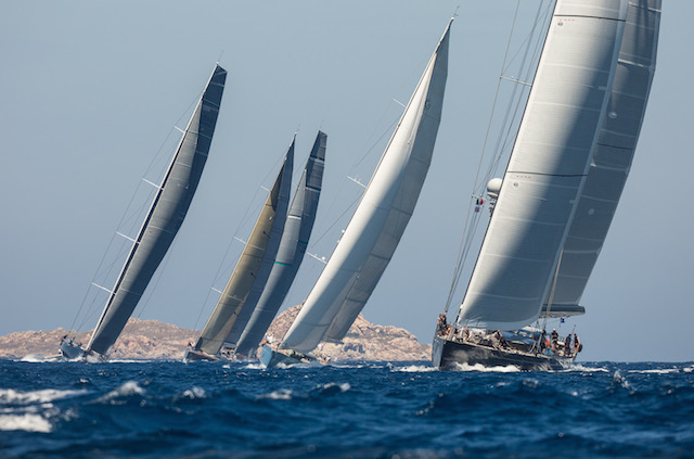After staggered starts the fleet compressed as they rounded the islands of La Maddalena Jeff Brown | Superyacht Media