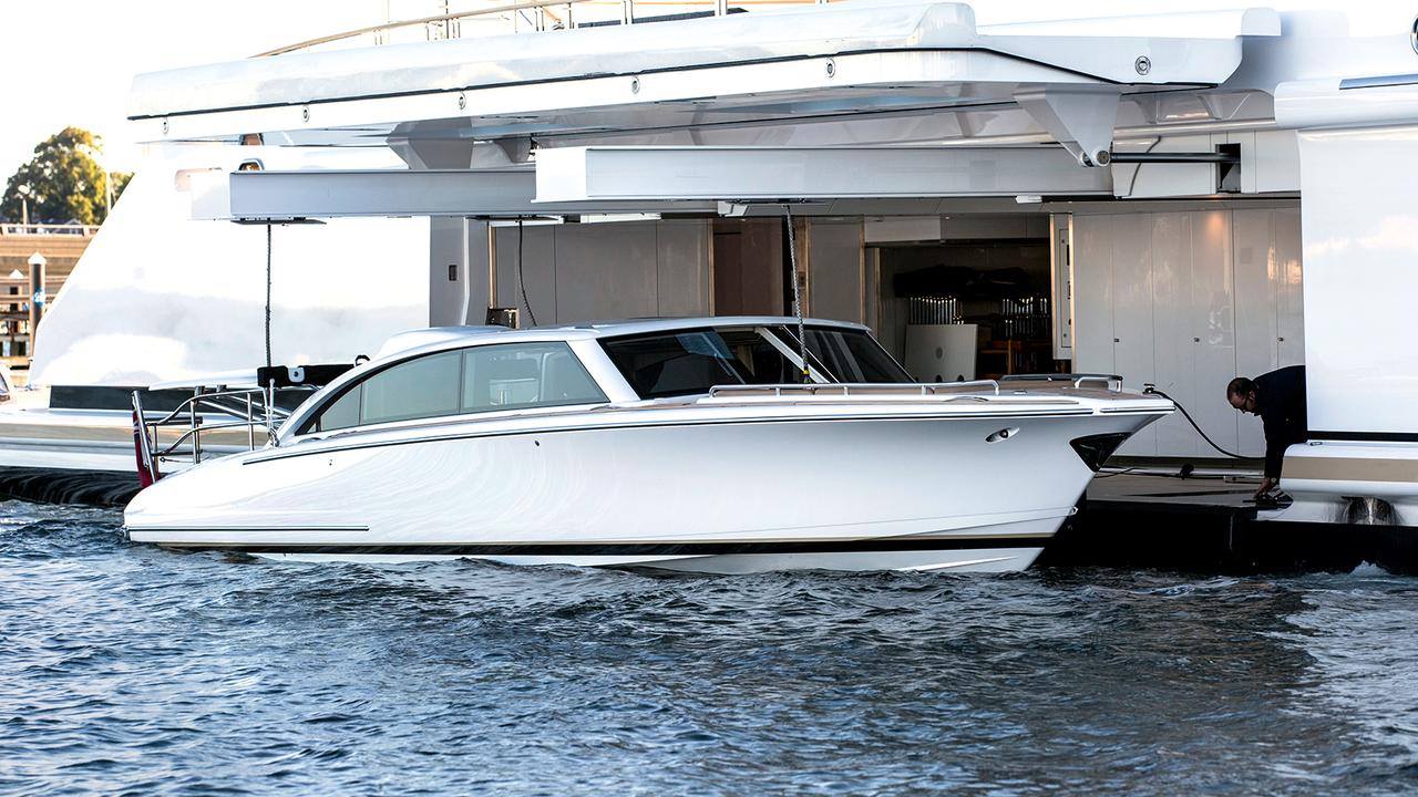 Hodgdon Yachts’ 11,4-metre Limo Tender for M/Y INFINITY, with naval architecture by Michael Peters, exterior styling and interior design by Michael Peters and Hodgdon Yachts.