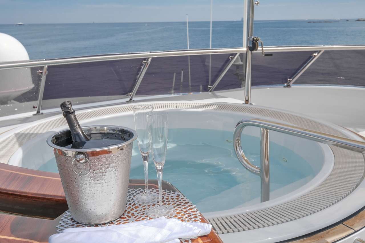 The sundeck offers unparalleled views where the forward Jacuzzi tempts guests to a languid afternoon of pleasure with cocktails and alfresco dining close at hand. Dry off on the sunpads or the aft sun loungers then settle into the seating along the stern to watch fireworks over such locations as Monaco or Cannes.