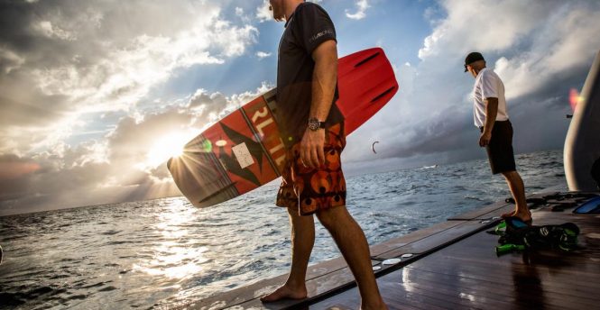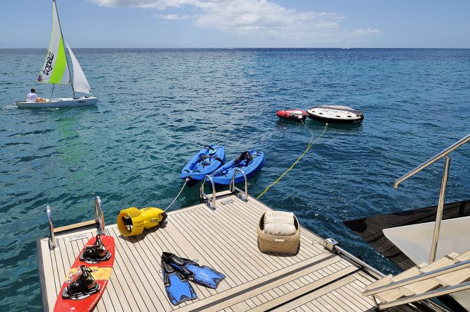 Sailing yacht DRUMBEAT – swimming platform with water toys