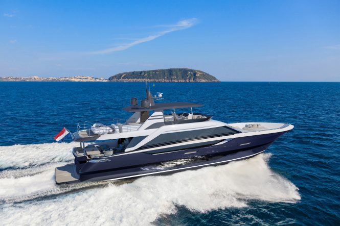 Described by Head of Sales Yoeri Bijker as having “the kind of timeless aesthetic that has become somewhat of a signature for the Van der Valk brand”, this brand-new model in the shipyards award winning flybridge range will literally fly through the water. Her advanced propulsion system can achieve speeds of up to 25 knots – impressive for a yacht of her size.