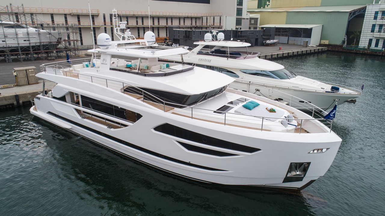 Taiwanese shipbuilder Horizon Yachts has announced the launch of the 26m motor yacht SUNRISE, the fifth hull in the Horizon FD85 series. The yacht boasts exterior styling by Cor D Rover and interior the Horizon’s in-house team.