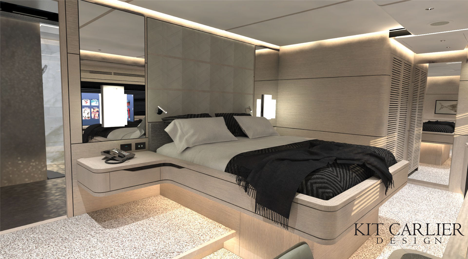 Accommodation includes a lovely contemporary main master suite with a large king-sized bed and an ensuite bathroom as well as an additional three double guest suites. One more guest cabin can be created by converting the cinema room into a guest cabin, as it also has an ensuite bathroom facility. The crew of 5 is also accommodated on the lower deck.