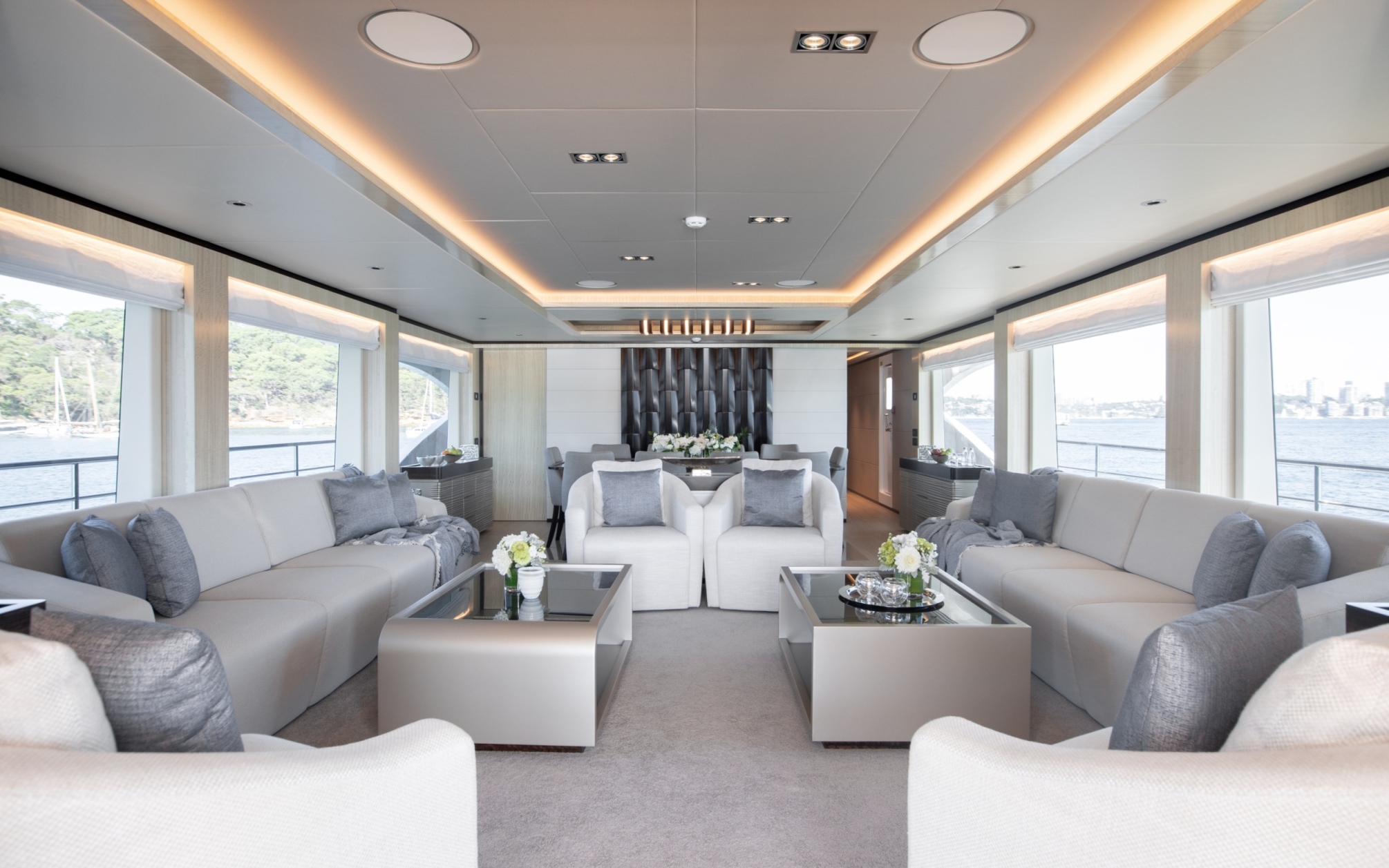 Her contemporary interior décor is both elegant and functional. On the main deck, there are an open plan salon and dining area, with neutrally toned furnishings and a lovely warm ambience. An upper sky-lounge boasts a relaxed and inviting atmosphere, the ideal spot to unwind. Accommodation is in one on deck master stateroom and 4 lower deck cabins.