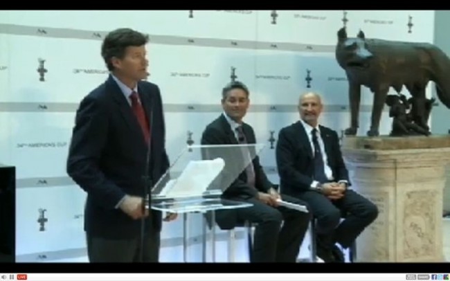 The group was addressed by Russell Coutts, of the Defender Golden Gate Yacht Club and BMW Oracle Racing and Vicenzo Onorato of the Challenger Club Nautico di Roma, and Mascalzone Latino
