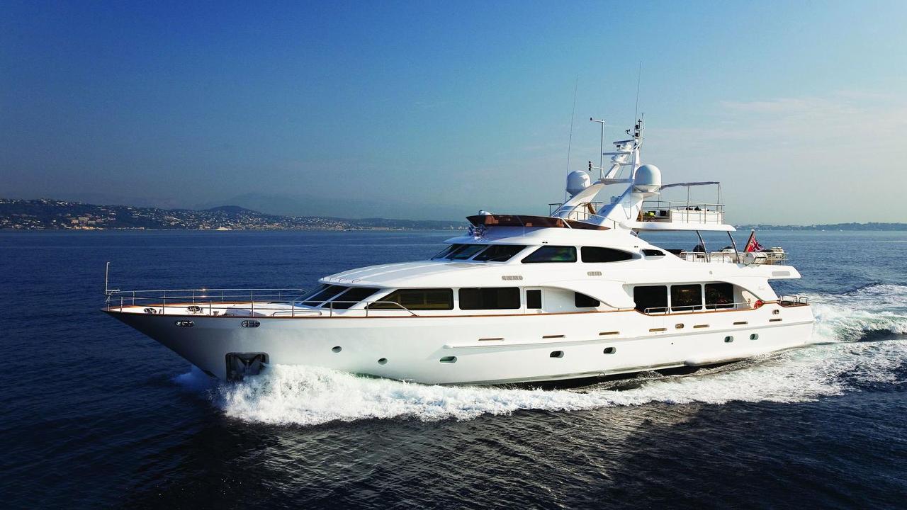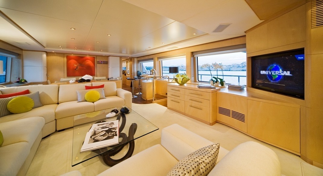 Twin CAT engines with 1001hp power the yacht, cruising at 11.5 knots and reaching top speeds of 13.5 knots. She is fitted with at anchor stabilizers, for optimal comfort.