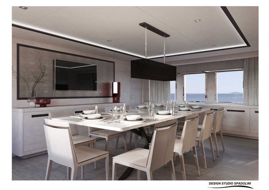 The overall layout also incorporates day heads on each deck, allowing the owner to host a considerable number of guests on board, respecting complete privacy for both him and his family and their private cabins.
