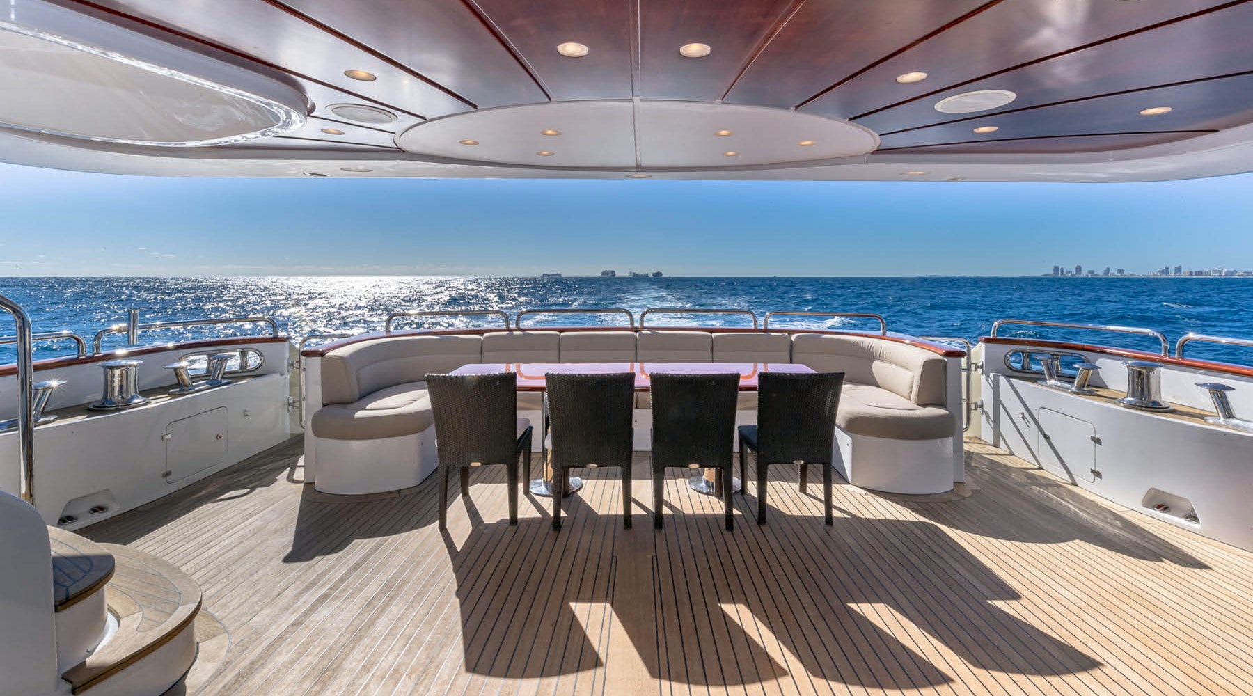 M/Y VIRTUE offers plenty of places to lounge and to admire the scenery of the French Riviera, with bar facilities available on all three decks, sunbeds on the foredeck and sundeck, multiple alfresco dining options, a Jacuzzi and canvas shades to keep guests cool.