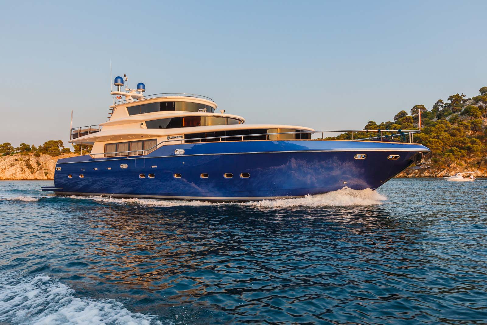 M/Y JOHNSON BABY enjoys the Adriatic with well-appointed outdoor living, which is laid over 2 decks. Adjacent to the salon is a shaded area with alfresco dining and direct access to the generous swim platform boasting a plethora of water toys.