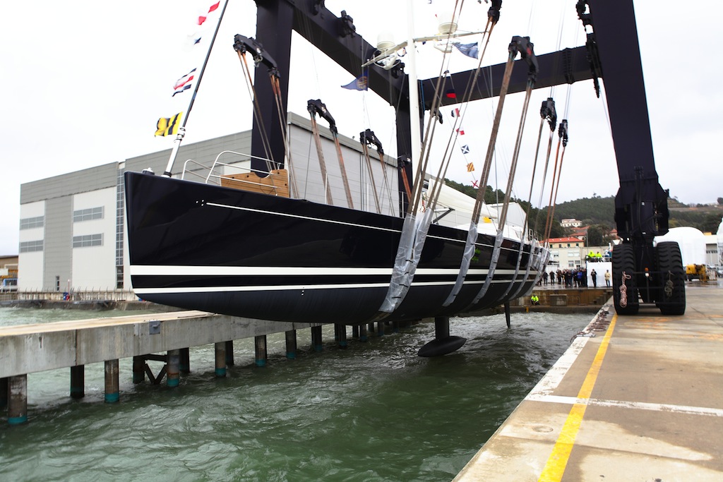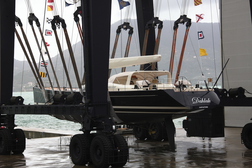Last week we have published an article about the mast stepping of the 38m Perini Navi sloop DAHLAK (C.2130) and it’s nearing launch date. Today, we have received information from the Perini Navi shipyard that beautiful sailing yacht DAHLAK hit the water on Saturday with success.