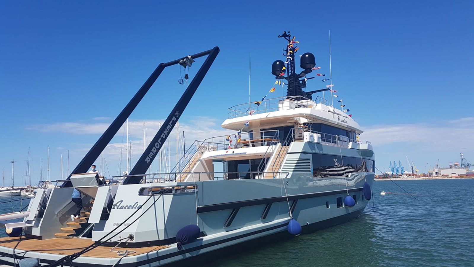 To launch the tender weighing up to 2,500kg with an overall length of 8.5m the crew uses the A-Frame crane.