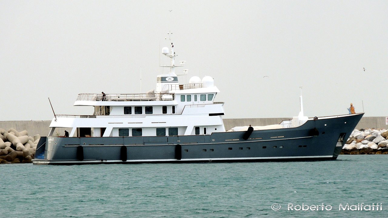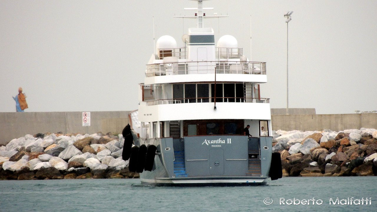 The 43-metre charter yacht AXANTHA II has been spotted in Livorno, Italy on Friday 22nd April by Roberto Malfatti. This sturdy expedition vessel, constructed by JFA Yachts and launched in 2011, was designed by Vripack Naval Architects and is capable of far-reaching ocean voyages. She was built with aluminium hull and superstructure, providing her with a moderate displacement, which in combination with a reasonably sized engine, allow her to reach a speed of 14,5 knots.