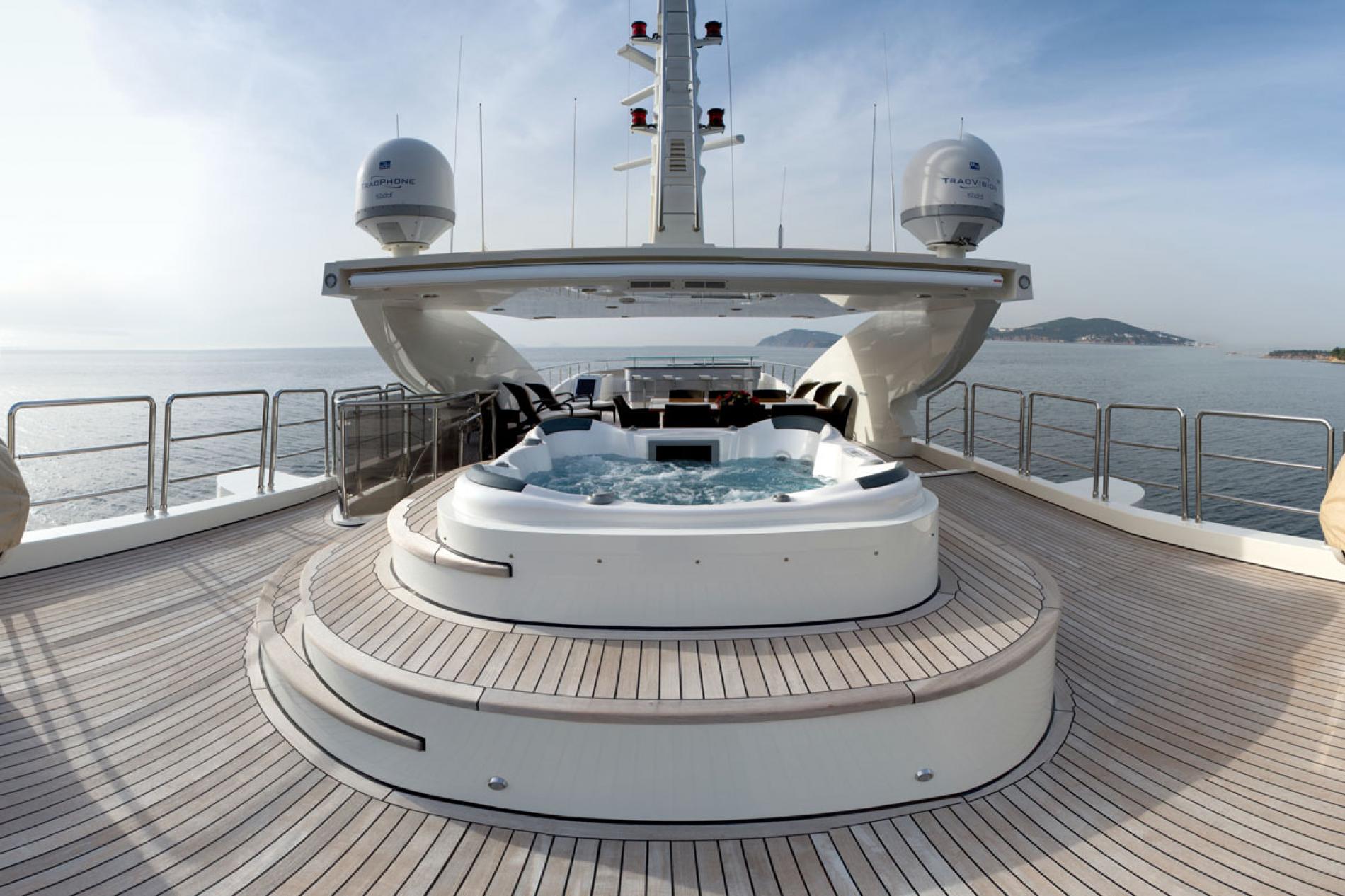 M/Y PANAKEIA is ideally suited to cruising the French and Italian waters, offering vast outdoor living. A large extended swim platform on the stern of the vessel leads into an open airy beach club, with seating. Steps lead to the main aft deck, where shade and sitting areas are perfect for any occasion. An upper level has a comfortable seating arrangement, as well as a Portuguese bow, with casual dining. The sundeck impresses, featuring alfresco dining, cocktail bar, sunning areas and deluxe jacuzzi.