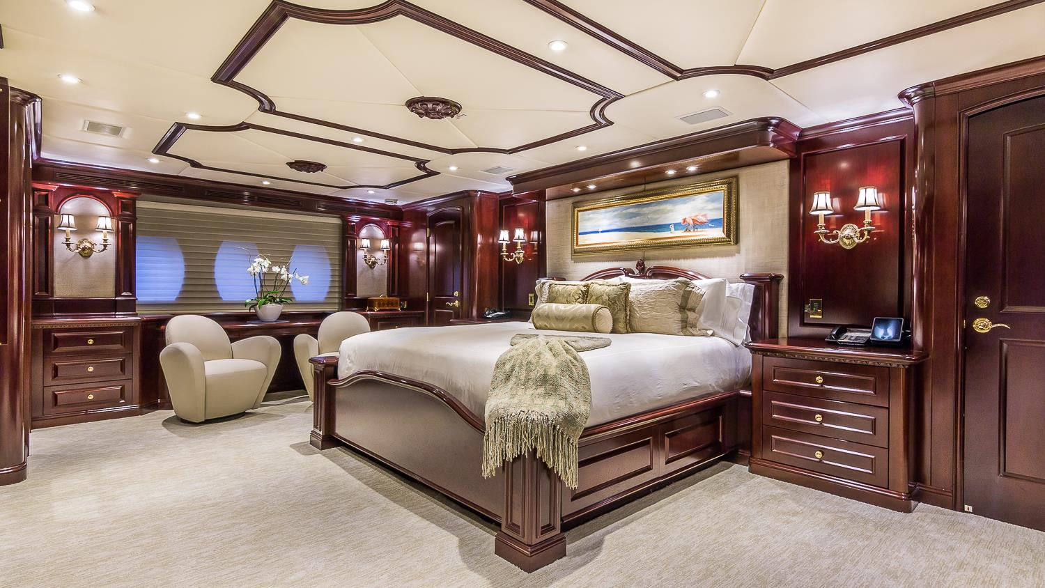 Delivered in 2003 and refitted in 2018, she has in-house naval architecture and interior design by Claudette Bonville. Eleven charter guests are accommodated over 5 cabins, comprising a main deck master stateroom, 3 king cabins and a twin suite on the lower deck.