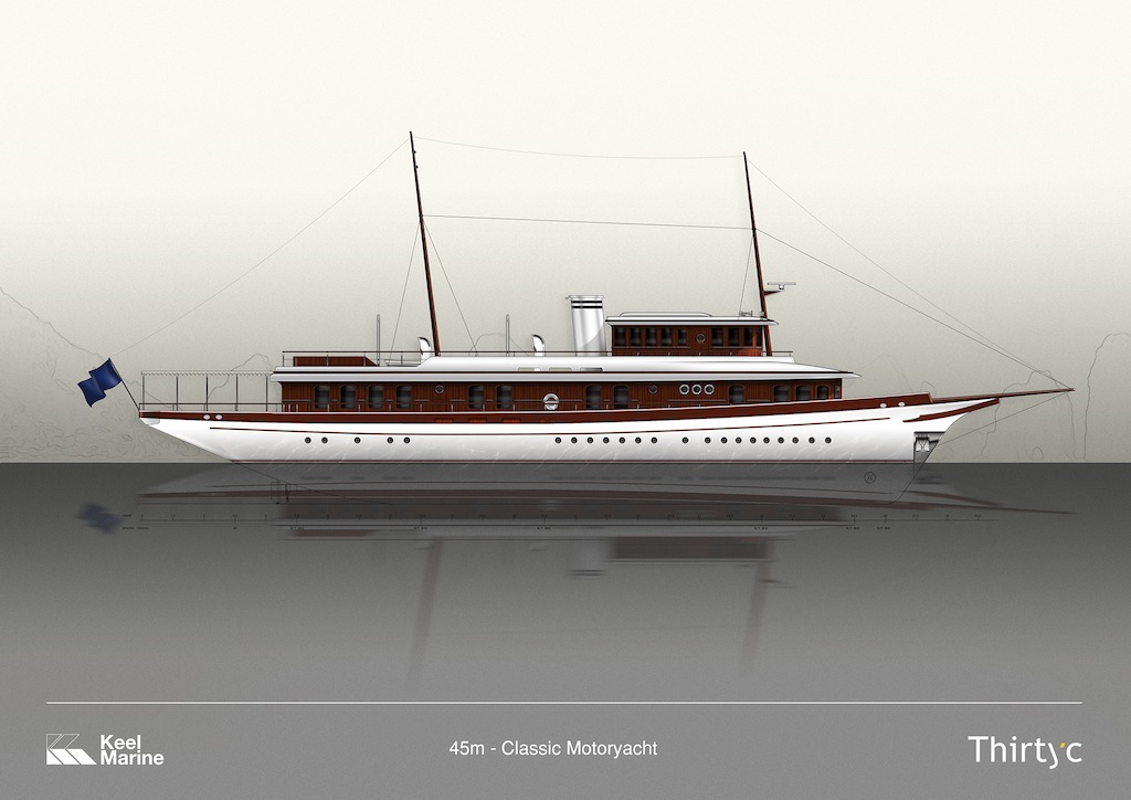 Collaborating with Keel Marine, ThirtyC have provided their assistance in the styling and interior design of the beautiful 1920s classic superyacht of 45-metres. The two companies have created a yacht that will transport you back to the glamorous and treasured era in yachting. The 45m Keel Marine and ThirtyC vessel bring together classic elements with a few modern touches and current state-of-the-art engineering practices.