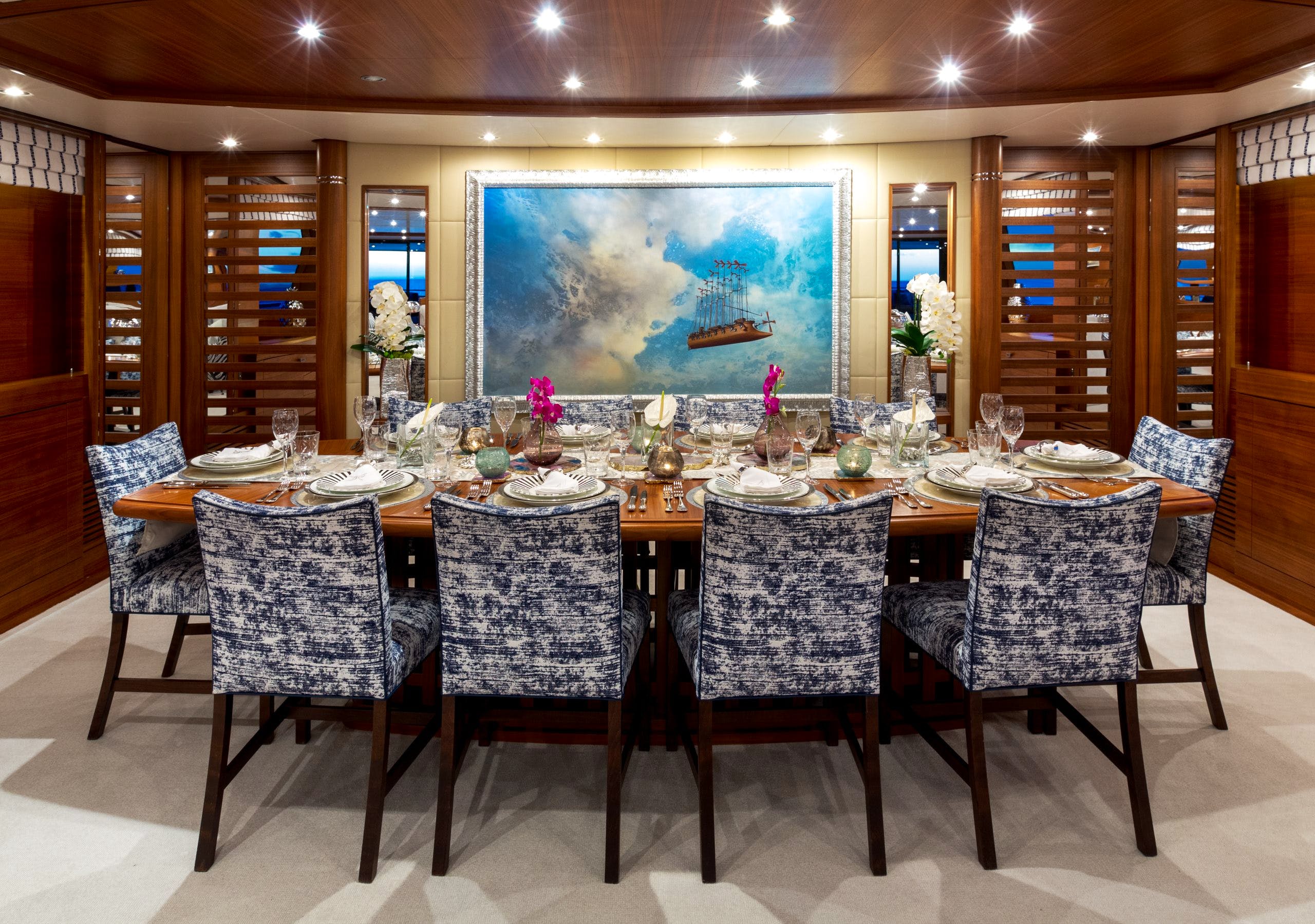Meanwhile the interior crew and chef will work tirelessly to ensure the comfort, entertainment and refreshment of guests throughout the charter. The guests will love the rich interiors which blend neutral soft furnishings with dark wood highlights and pops of dramatic fabric choices.