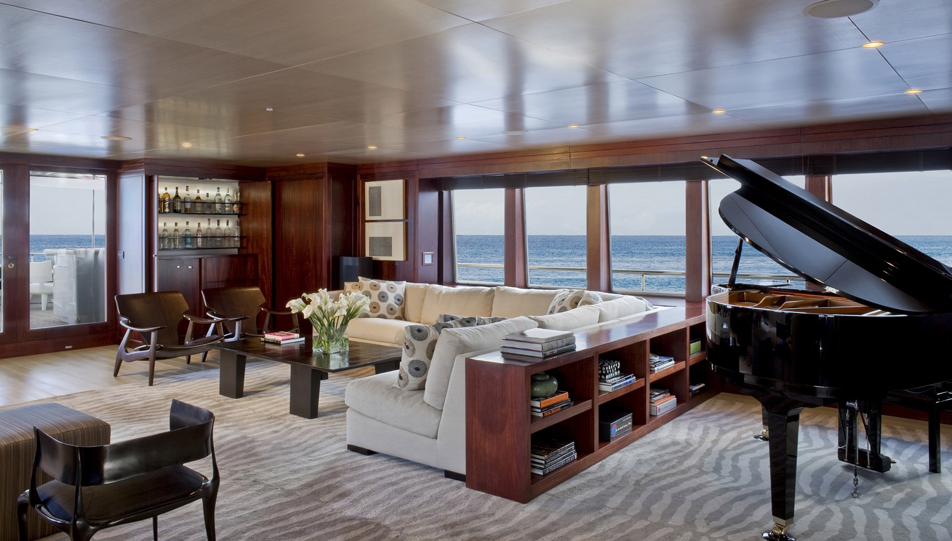 The sky lounge boasts a casual atmosphere, with a good size lounge, baby piano, games table, wet bar and cinema arrangement. Below decks are 2 double and 2 twin cabins.