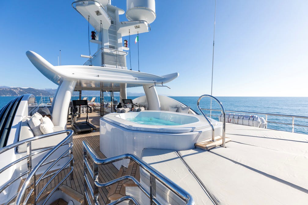 The foredeck and sundeck both provide places to lie back and bask in the warmth, with panoramic views in both locations. The sundeck in particular is a focal point for outdoor social gatherings and offers an alfresco dining area, wet bar, Jacuzzi and sunbeds plus additional seating in the shade.