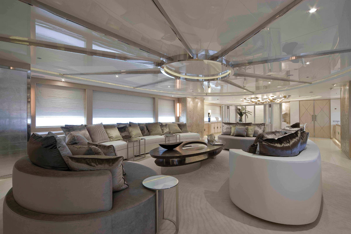 One of the most arresting aspects is her upper deck, replete with sunpads on the forward deck, while the aft holds an incredible swimming pool, lit from above at night. Seating along the bow provides guests with a comfortable place to chat in small groups and dine alfresco, all while watching the action of the Formula One racers speeding past below.