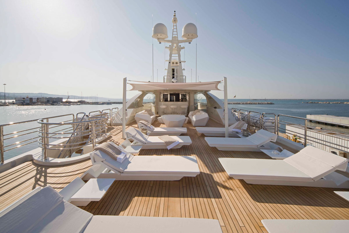 Extensive sun bathing areas including an opulent sundeck forward Jacuzzi and rows of sun loungers, plus a great and varied selection of water toys ensure that luxury yacht LIGHT HOLIC truly lives up to her name.