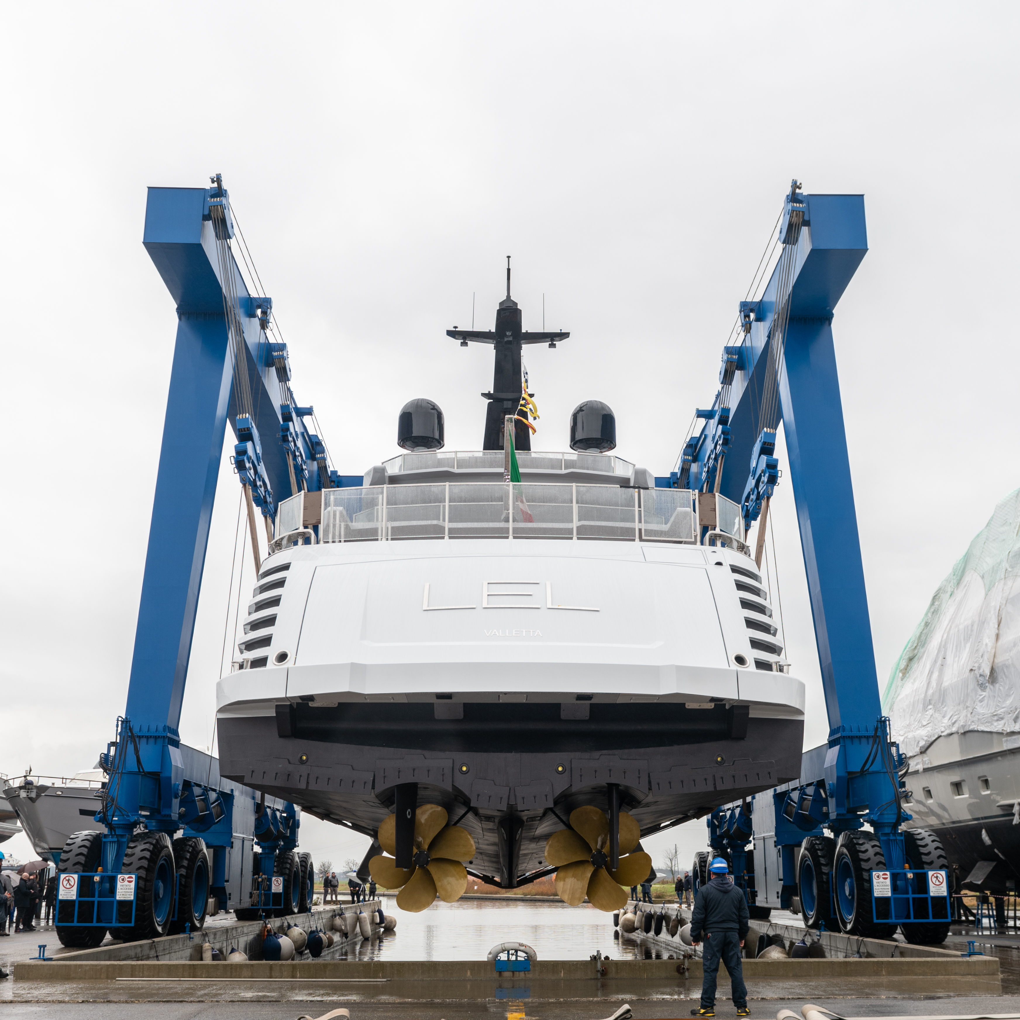 The exciting news comes from the Italian shipyard Rossinavi as the 49.7m/163.1ft luxury superyacht LEL (HULL FR038) hits the water during the private launch ceremony on the 31st of January.
