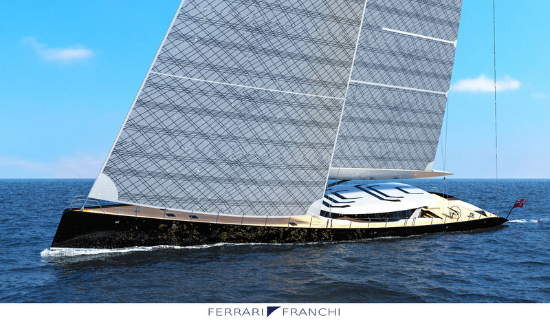 Italy-based designers, Marco Ferrari & Alberto Franchi, are proud to unveil their all-new 50-metre sailing superyacht concept. The 50m Ferrari & Franchi luxury yacht concept is a striking performance yacht, boasting an innovative reverse bow and a modern design with generous outside areas ideal for entertainment.