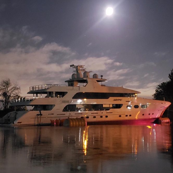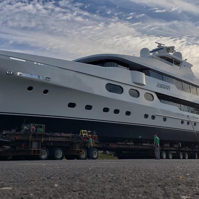 The 50-metre luxury yacht JACKPOT has been successfully launched at Christensen at the Vancouver facilities. Under construction, while she was still known as Hull 38, JACKPOT was commissioned to experienced owners. She was designed by the team of designers at Christensen with interiors by VARO Interior Design.