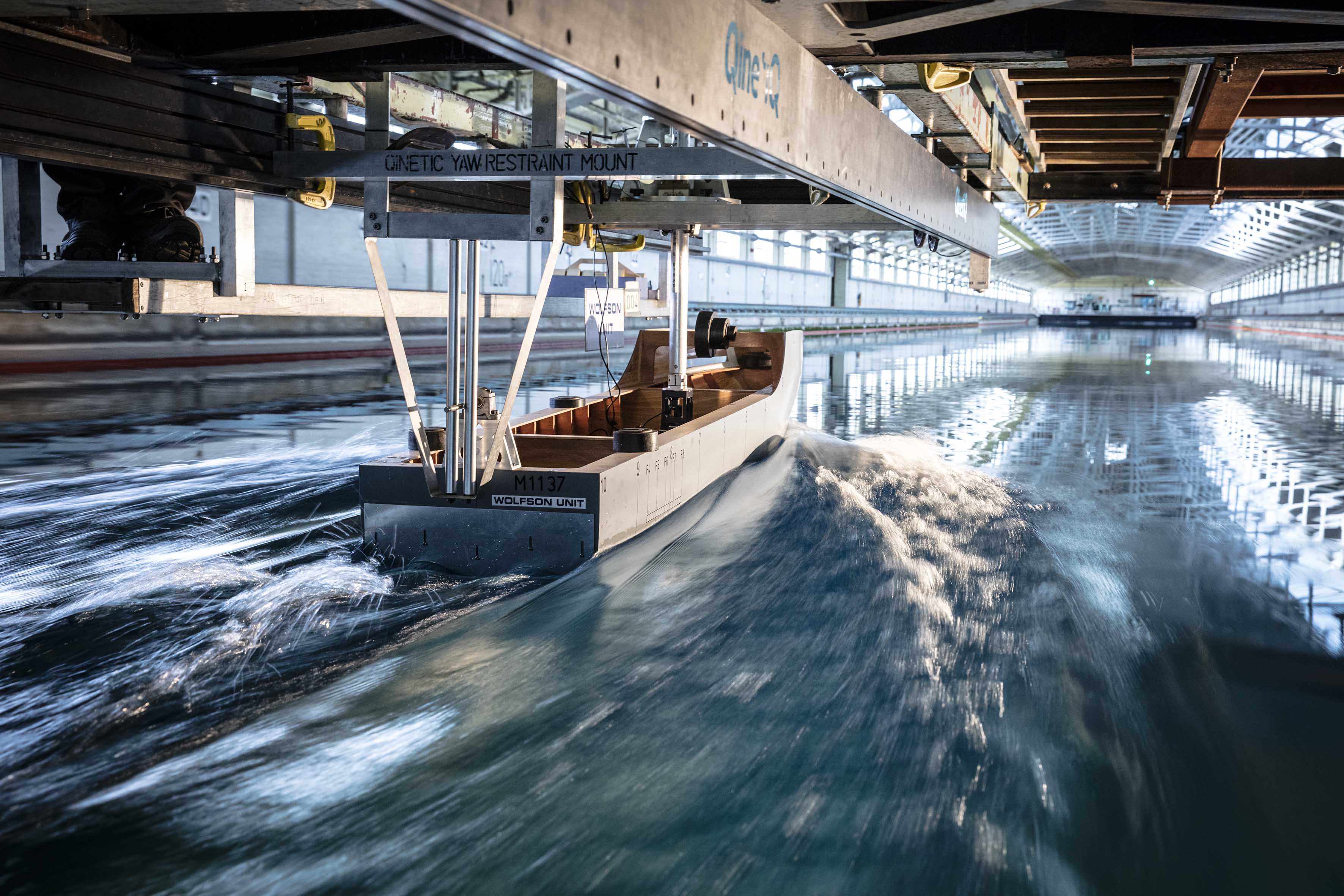 Van Oossanen carried out the computational fluid dynamics (CFD) tests and optimized the hull shape, following which a 1:16 scale model of the vessel was tested in the towing tank in Southampton, UK. Thanks to the optimization of the hull design there has been an increase in efficiency by 12%. This significant outcome was possible by way of raising the transom and making it sleeker, in addition to the propeller tunnels which were incorporated into the hull. This means that the 5000 Aluminium class boasts raised propellers, which in turn has lowered the draft to just 2.15 meters.