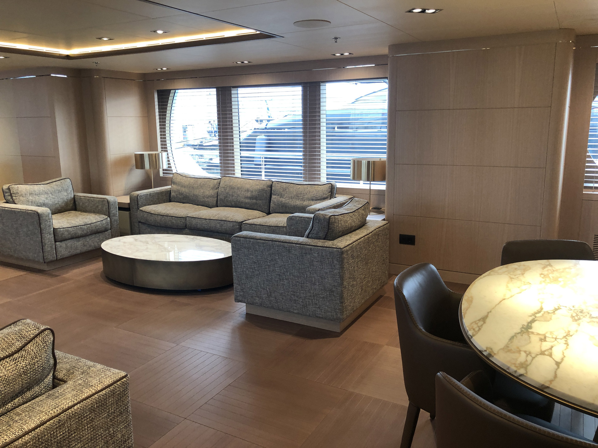 On the exterior, the main deck features spacious seating and relaxation area aft, while the upper deck offers further seating as well as an al fresco dining option. The popular Jacuzzi hot tub with sunbathing area and seating is found on the sun deck, which also offers amazing panoramic views of the surroundings.