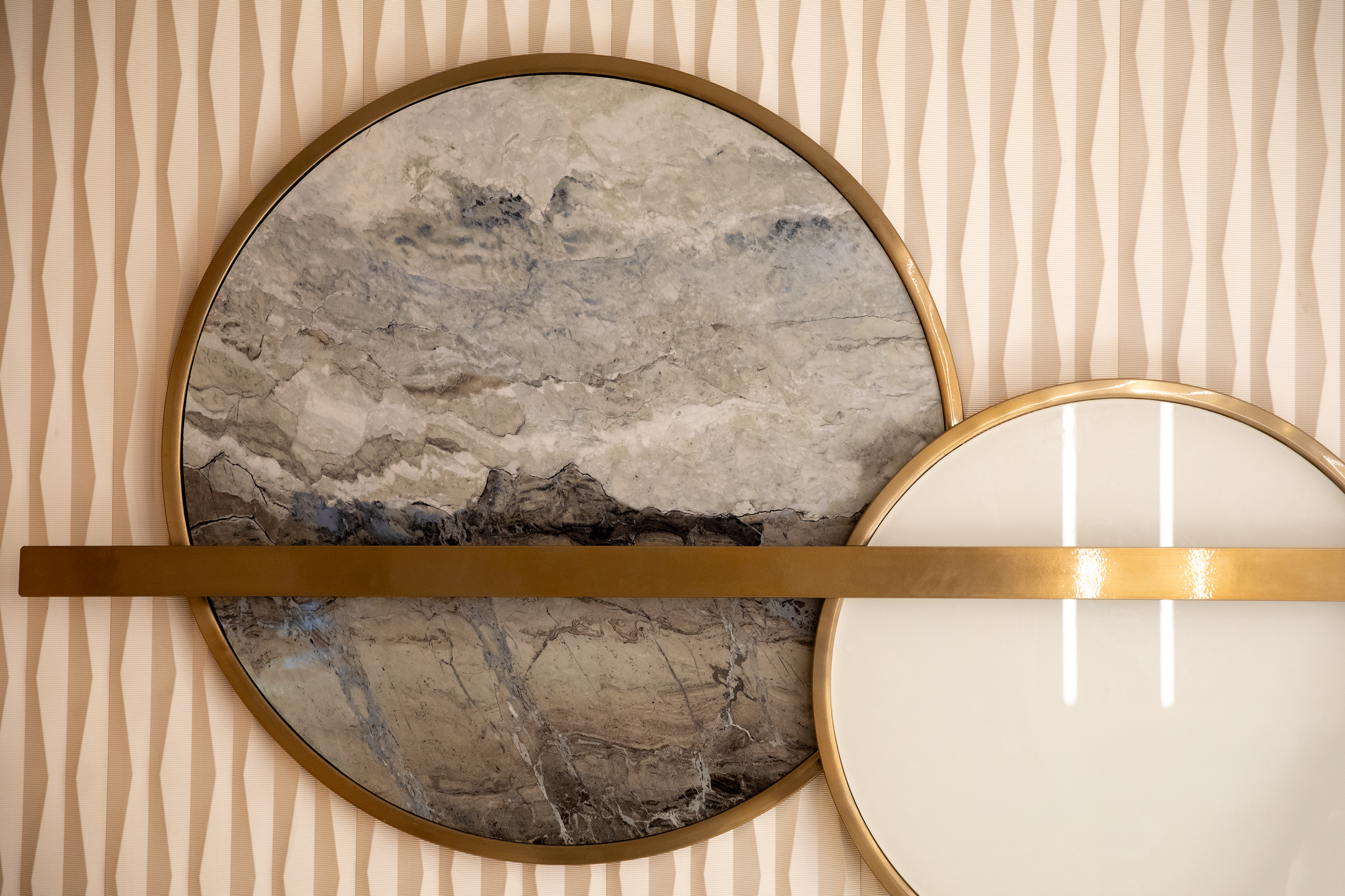 The flybridge is zoned to create distinct spaces for dining, sunbathing or simply relaxing with a drink on the sunpads or the sit up bar which surrounds the stunning circular jacuzzi. Sheltered by the flybridge overhang is the main deck aft which offers a sophisticated and sociable al fresco dining setting with an open lounge overlooking the stern. From here, large transom doors are hiding another surprise – an intimate lounge area, perfect for a morning coffee or relaxing at the water’s edge.