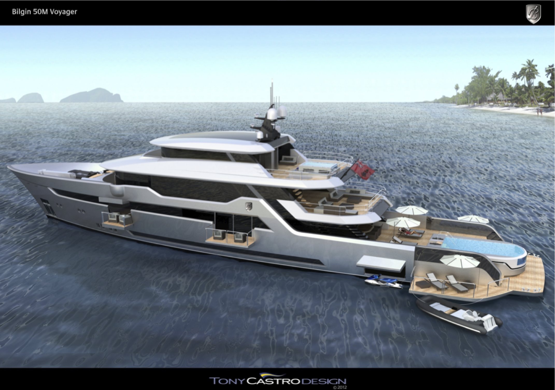 The new 50m motor yacht BILGIN VOYAGER 170′ is an original four-deck concept, designed by TONY CASTRO, well known for his seaworthy yachts. The new Bilgin Voyager 170′ superyacht boasts go-anywhere capabilities and she is a fantastic example of a modern comfortable exploration super-yacht design and build, perfect for great ocean adventure yacht charters.