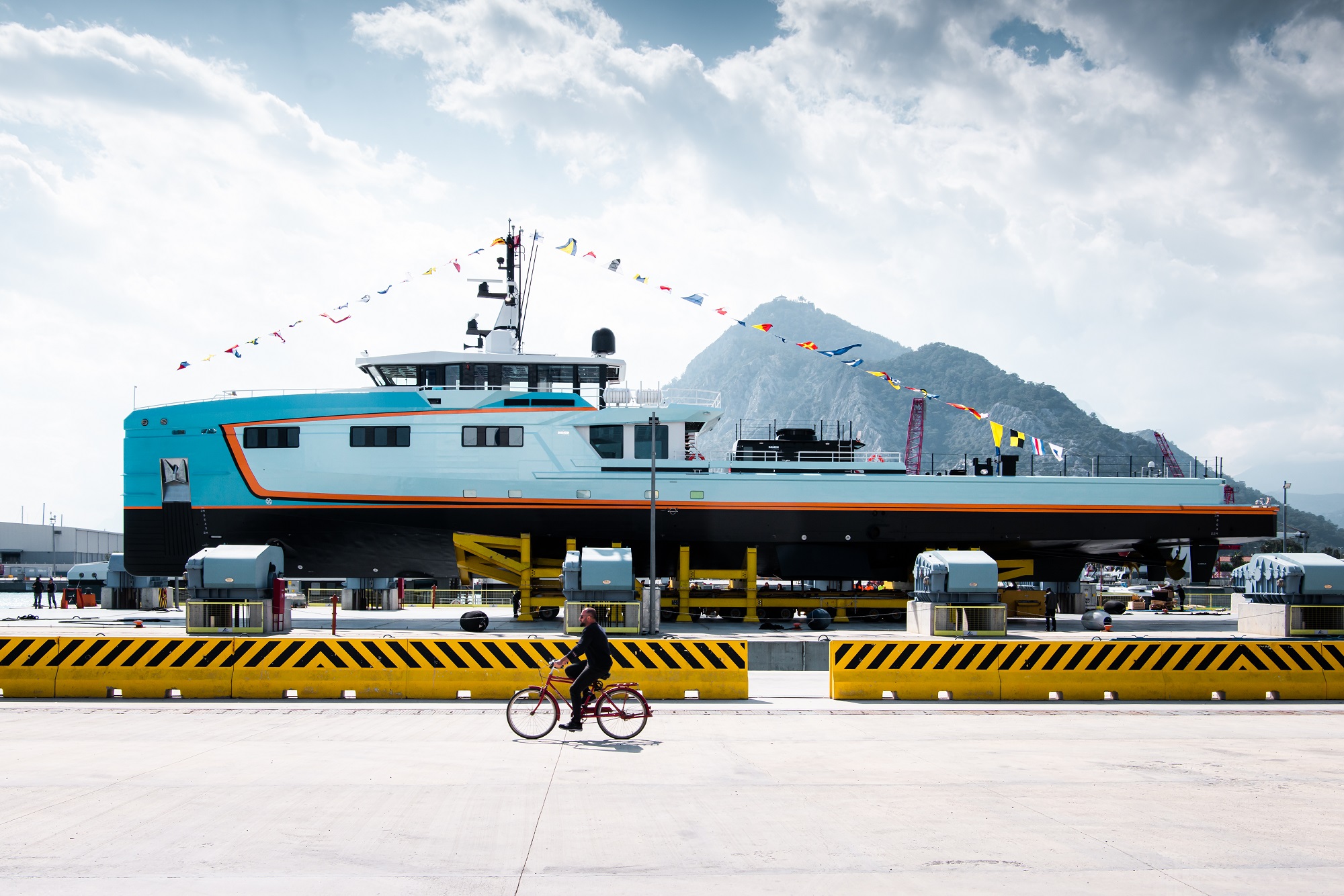 She incorporates two decades of successful Yacht Support experience, showcasing a deep understanding of high-end yacht operations, global adventure lifestyles and outstanding technical solutions. Jan van Hogerwou, Commercial Executive at Damen Yachting, has worked with the Owner on this project since the outset. “We are proud to be launching this very special 53-metre Yacht Support today. YS53 FIVE OCEANS will be used to research life below the surface of our oceans, a topic and cause central to Mr. Allen’s operations and an important vision that we are honoured to be contributing to with this Yacht Support platform. Seeing her out in the open and ready for the final stages of her build before her delivery just a couple of months from now is the start of something truly exciting.”