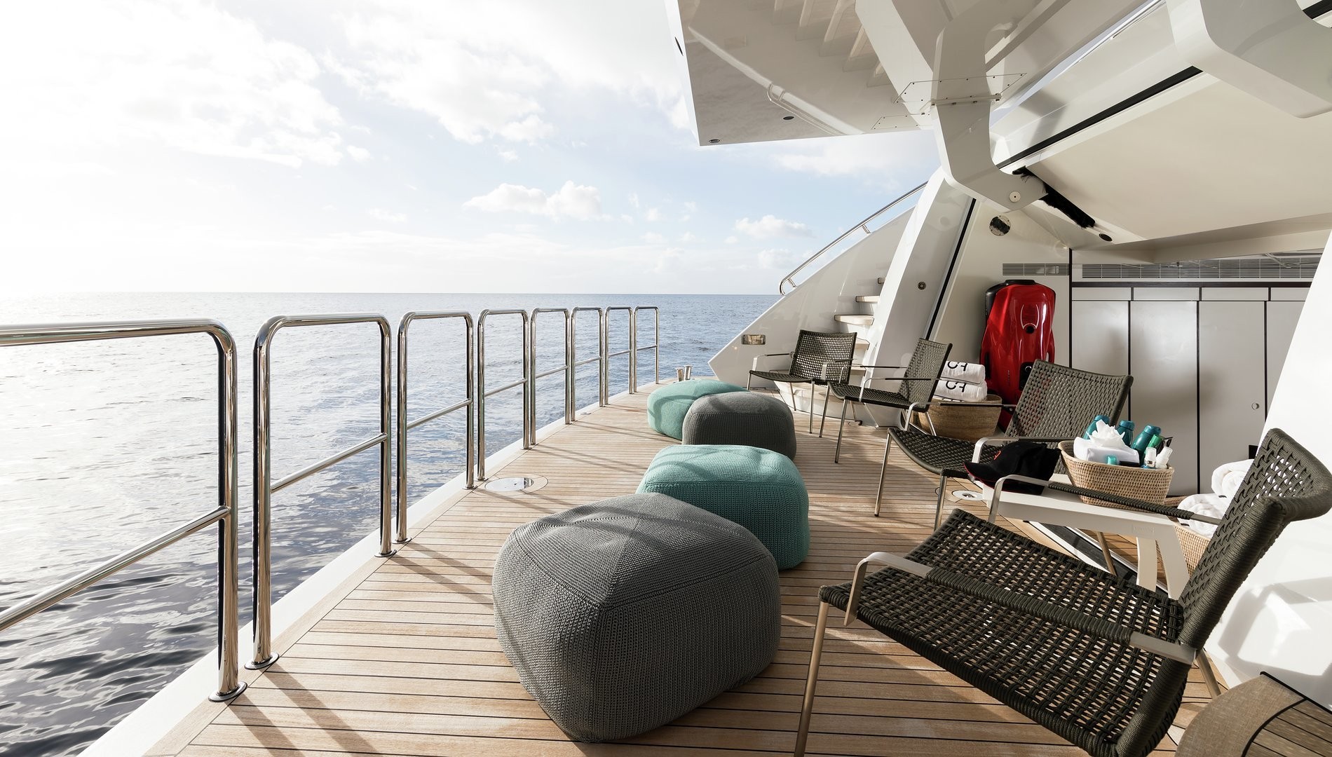 Guests will enjoy the fabulous sun deck with the popular Jacuzzi pool and the surrounding sun pads, as well as the outdoor cinema. Another great feature to mention is her cast beach club and the excellent selection of water toys, which are guests disposal for unlimited water fun and activities.
