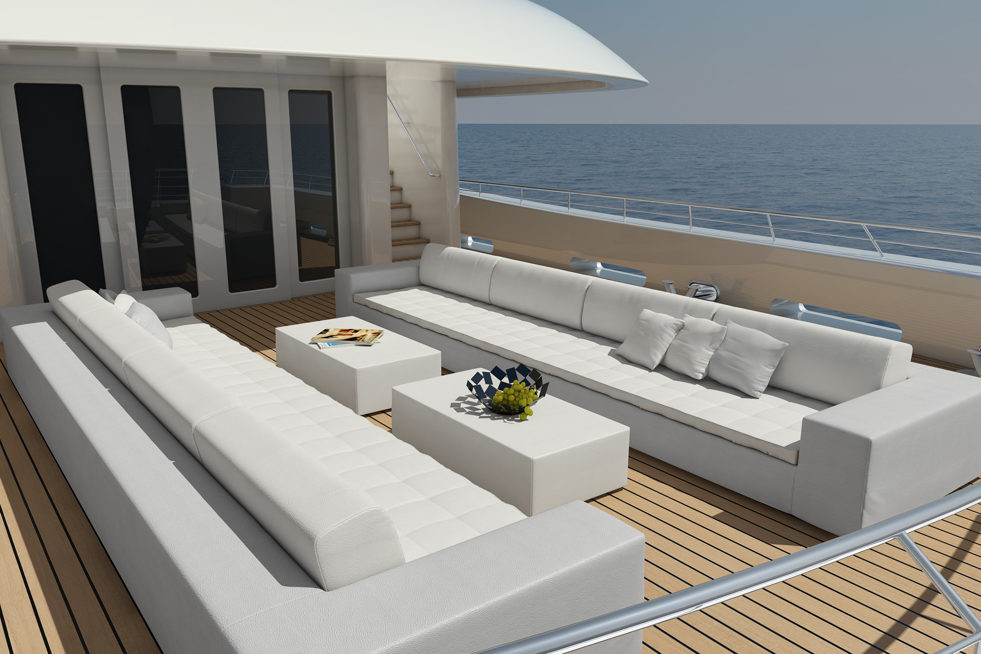 The spacious interior and exterior areas are aesthetically pleasing and feature thick bulwarks on every deck, providing guest aboard with a sense of safety as well as adding to the yacht’s powerful looking design. It was clear right from the beginning that these elements represent an important part of the design in order for it to work.