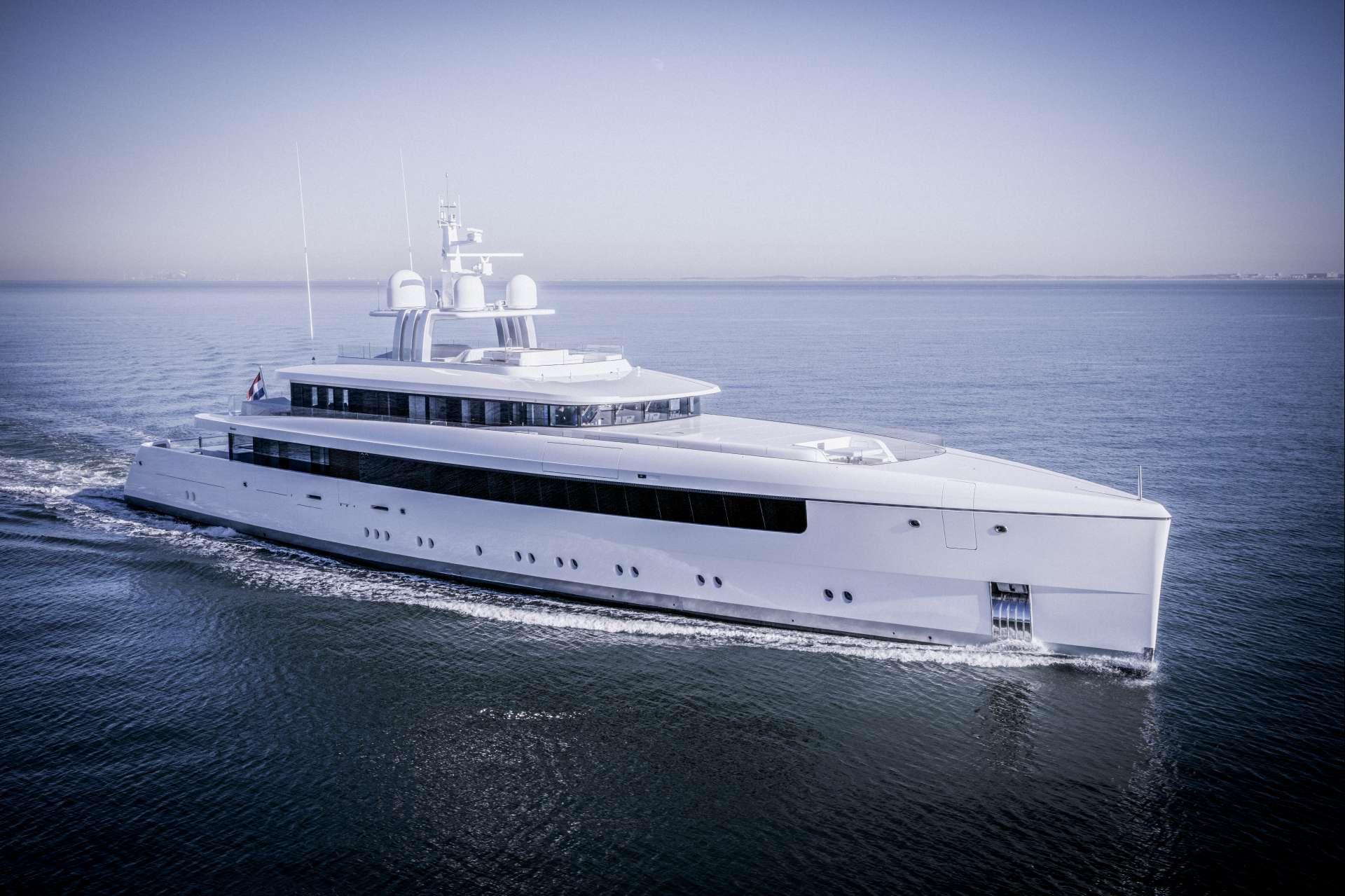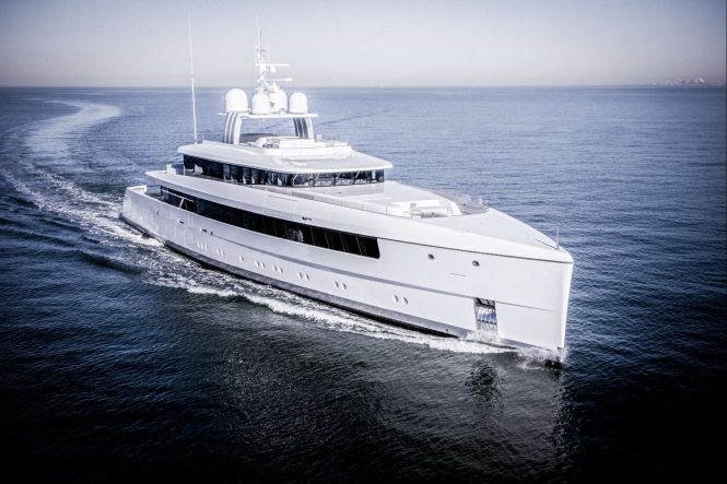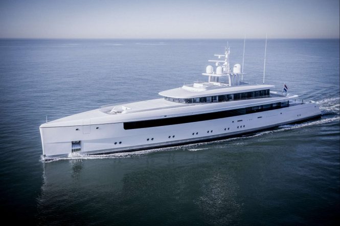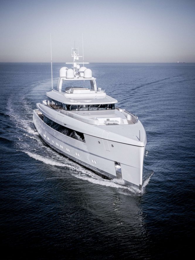 Built according to the design developed by Philippe Briand and Feadship De Voogt Naval Architects, this full aluminium superyacht boasts a masculine and sleek exterior look by Vitruvius Yachts. Studio Christian Liaigre worked on the finely detailed and high-end interior. Although images of the interior have not been released at this stage, it is described as bright and spacious, with an abundance of natural light for a relaxing atmosphere onboard.