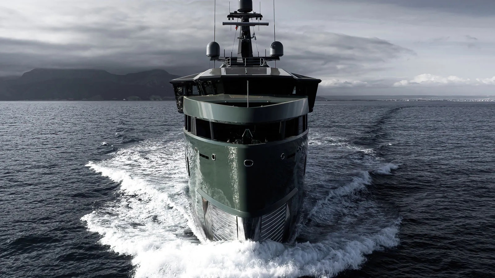 This will no doubt be the first voyage of many as the owners reputedly want to use this unique yacht for ‘globetrotting exploration’. As such the design offers 5,00 nautical mile range, an ice-class hull and 30 days autonomy. She carries a variety of extras including two tenders, water toys, motorcycles and vehicles for both on and off-road use, plus a sailing yacht with 11.4m sails.