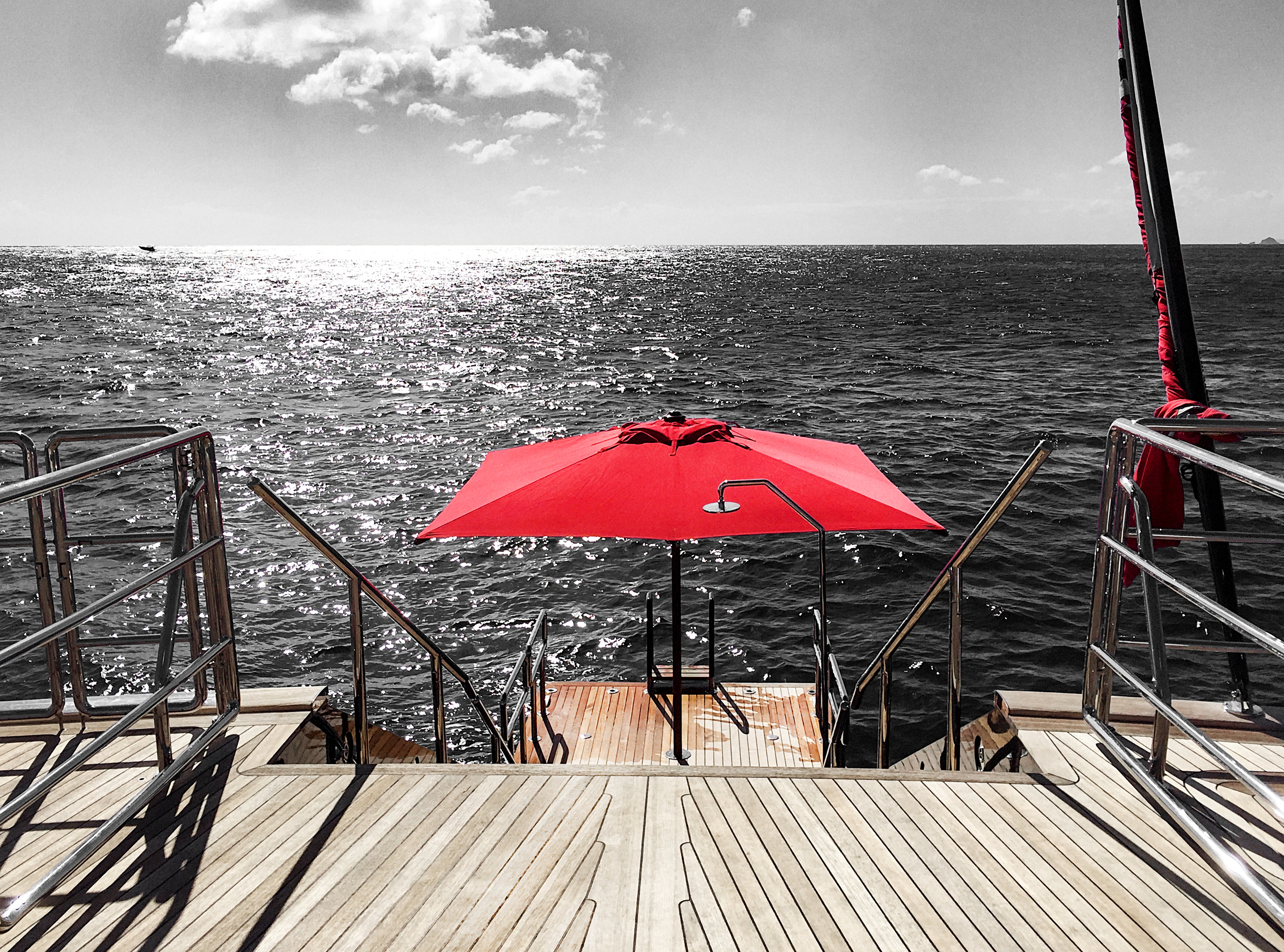 S/Y SEAHAWK has beautiful teak decks that sprawl fore and aft, providing charter guests with excellent areas to unwind, soak up the Tropical sunshine and watch the world go by. A shaded area adjacent to the salon features alfresco dining, sitting areas and TV and music entertainment.