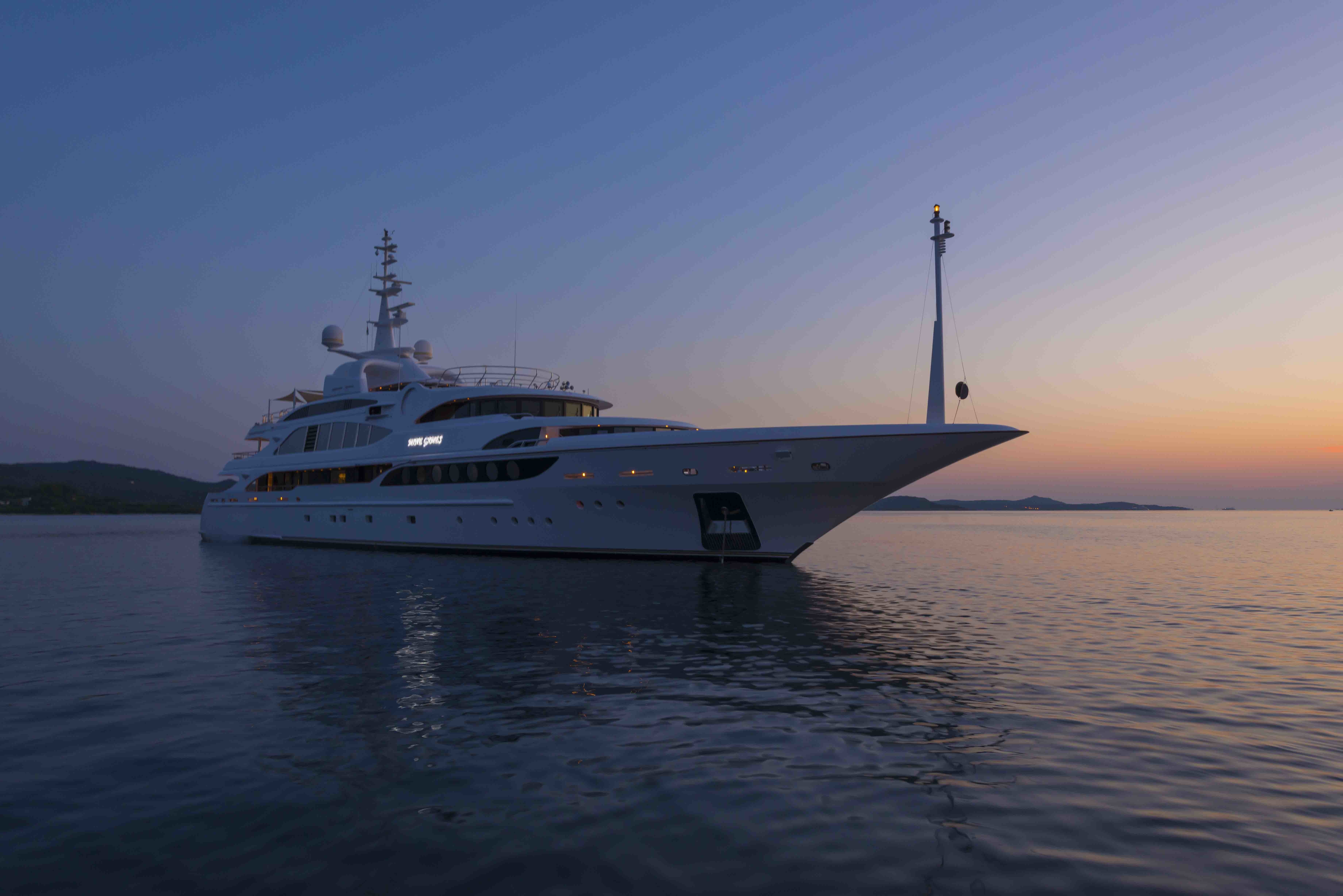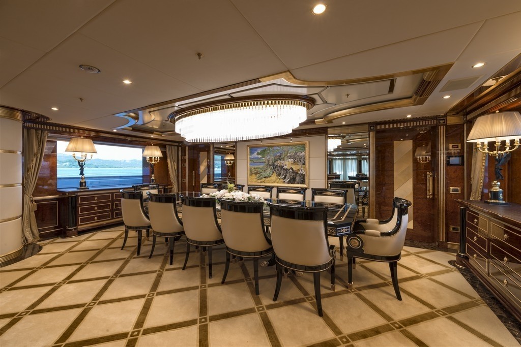 Her elegant interior décor is sophisticated throughout, using lavish fabrics, bespoke furniture and luxurious fixtures and fittings. The main salon is ideal for every occasion, with a generous lounge centred, wet bar aft and semi-open plan formal dining forward. An upper salon is aft of the bridge and equally as impressive, with a lounge, wet bar, piano and full entertainment systems.