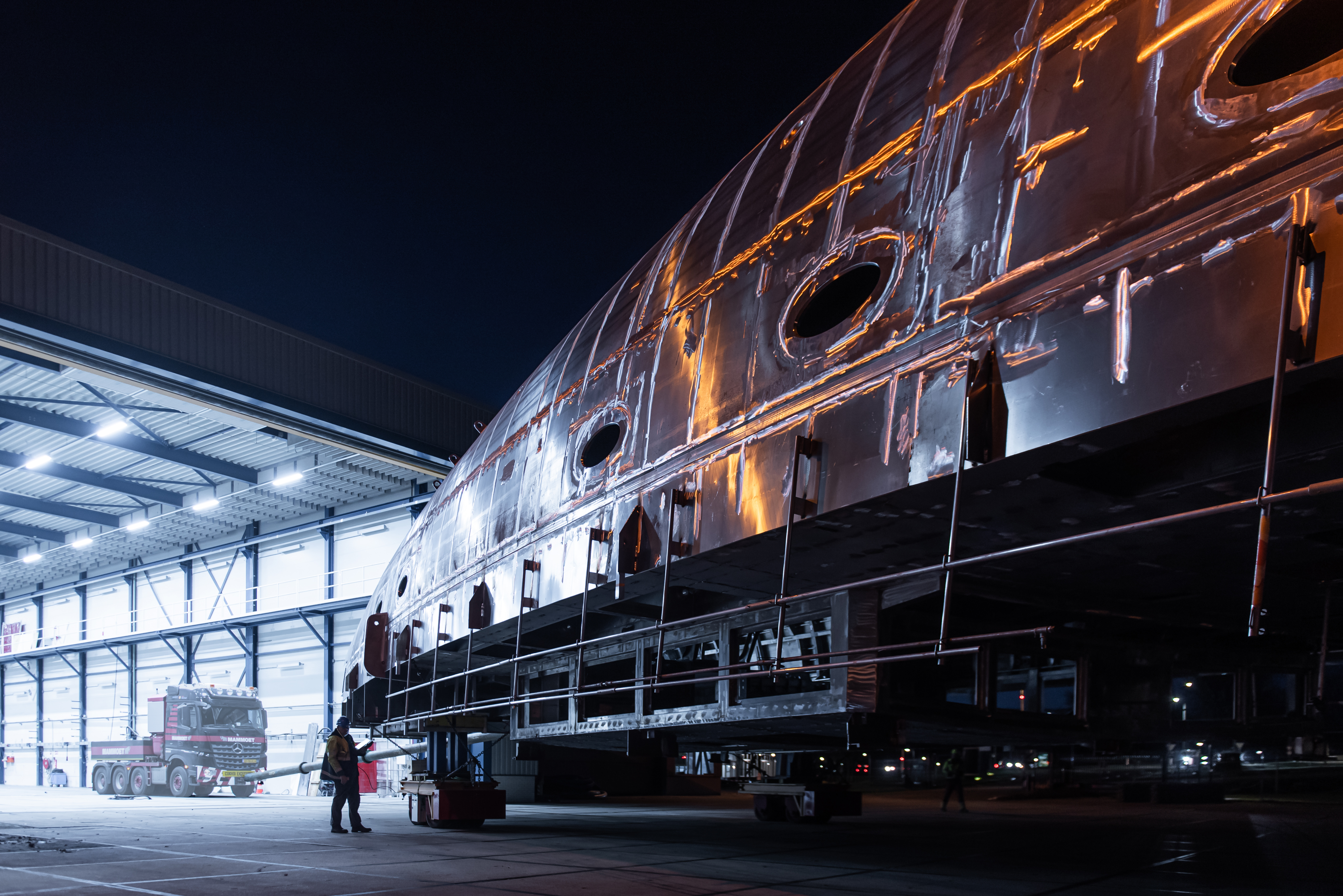 65m Sailing yacht AQUARIUS II (Royal Huisman Project 408) took another step towards completion as her hull was turned
